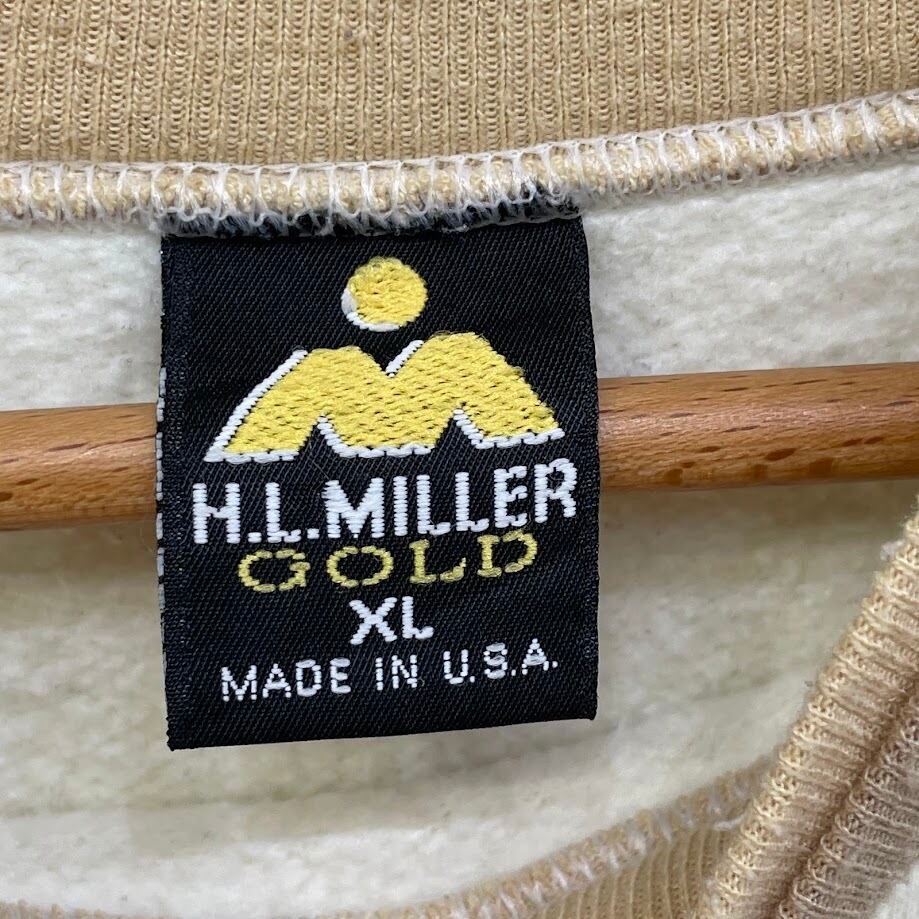 商品名:H.L.MILLER GOLD 90年代/90's vintage ヴィンテージ USA製 スウェット トレーナー フロントプリント オーバーサイズ ビッグシルエット XLサイズ ホワイト ベージュ
