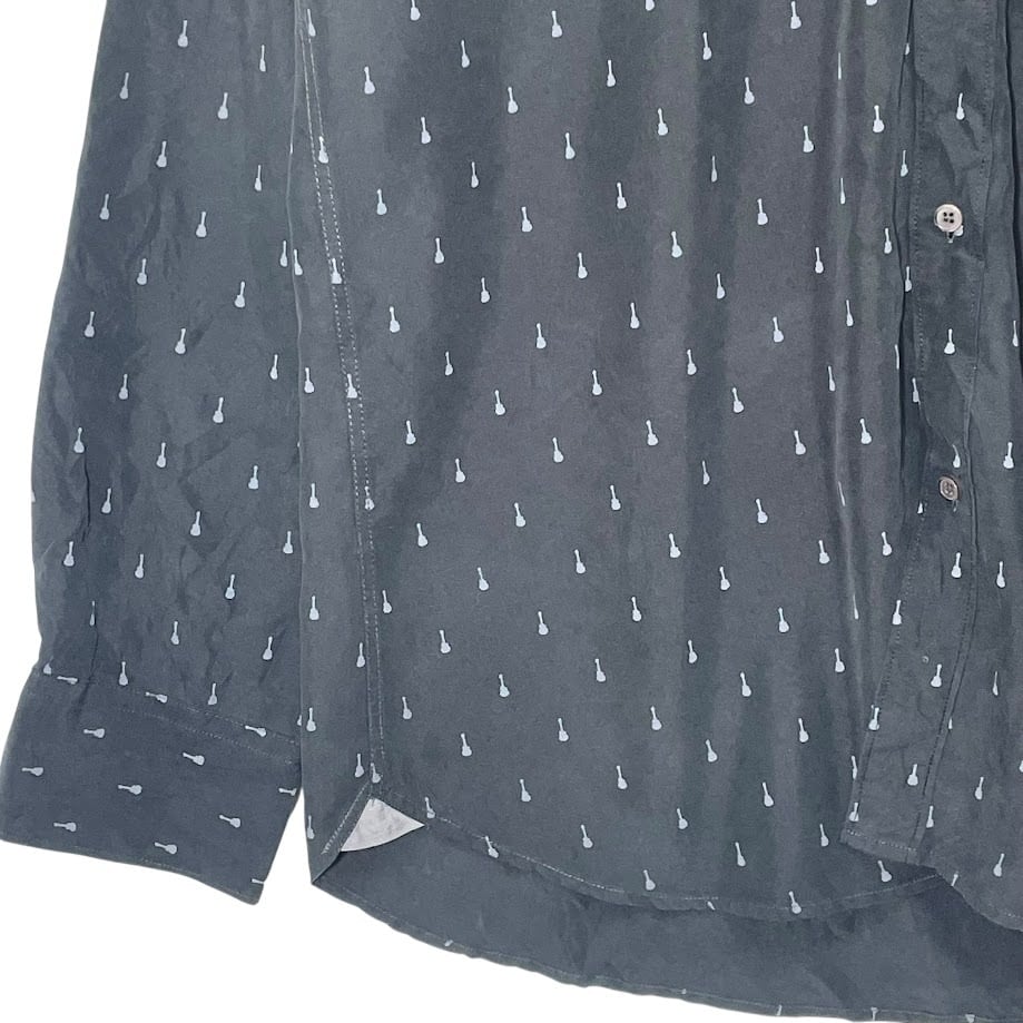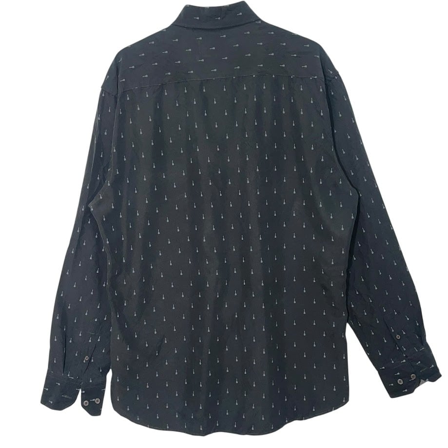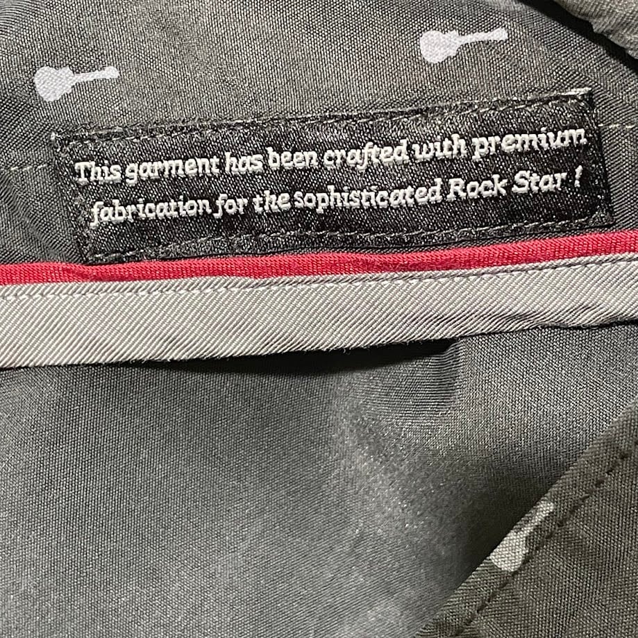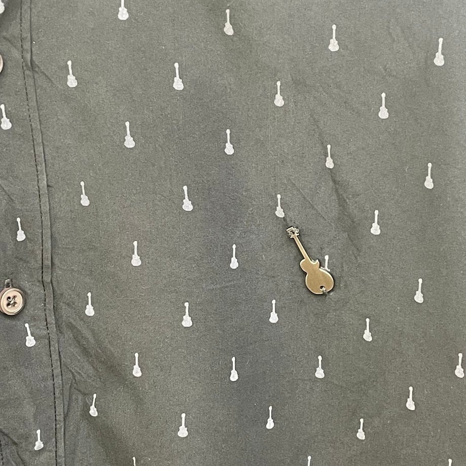 商品名:HardRock/ハードロック ギター総柄シャツ 長袖シャツ ボタンダウン プリント ワンポイントピンズ China製 XLサイズ ブラック