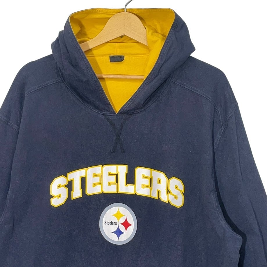 Reebok リーボック NFL STEELERS 2WAY リバーシブル パーカー フーディー プルオーバー フロントプリント オーバーサイズ ビッグシルエット ネイビー イエロー | OASISCLOTHING 海外古着屋【公式】通販サイト