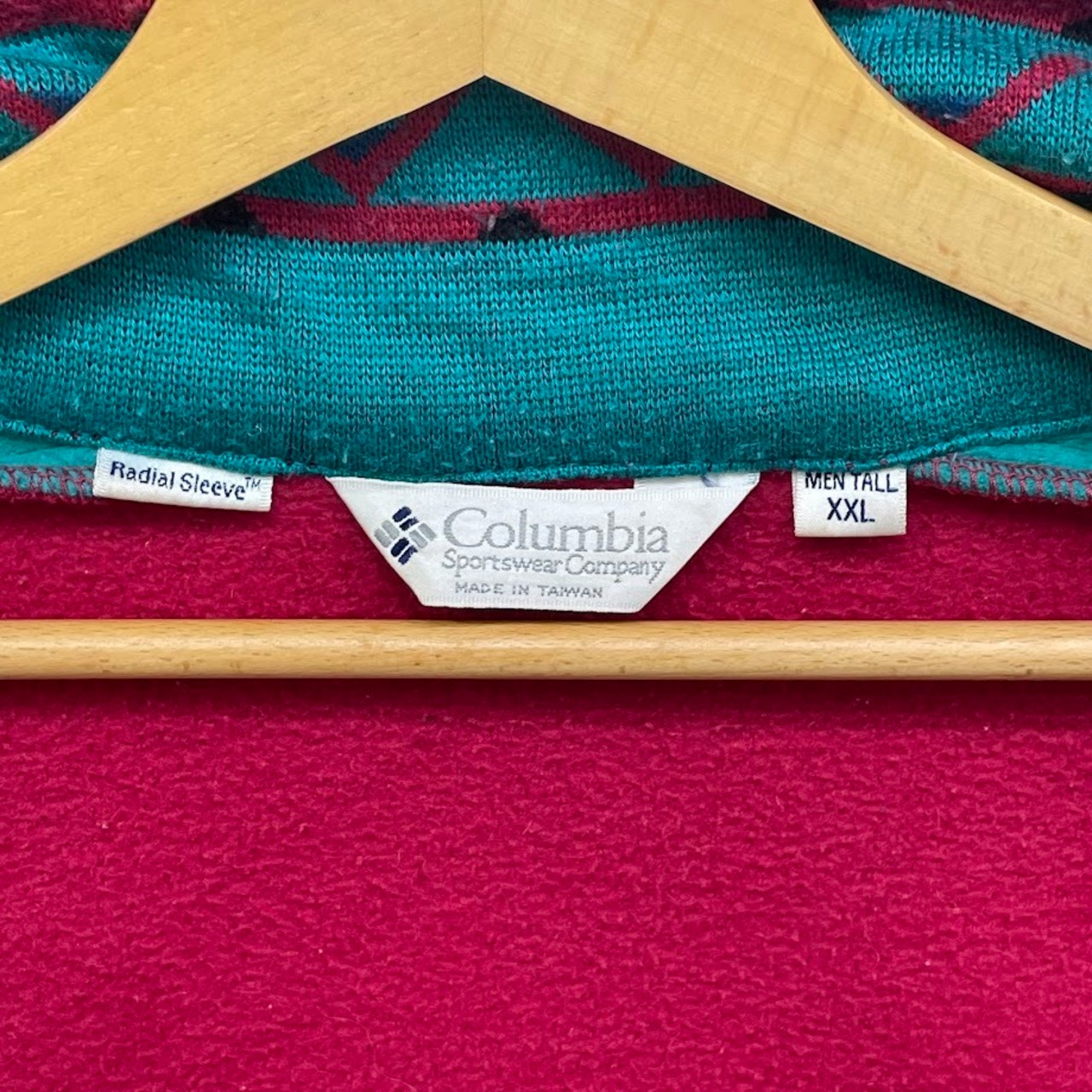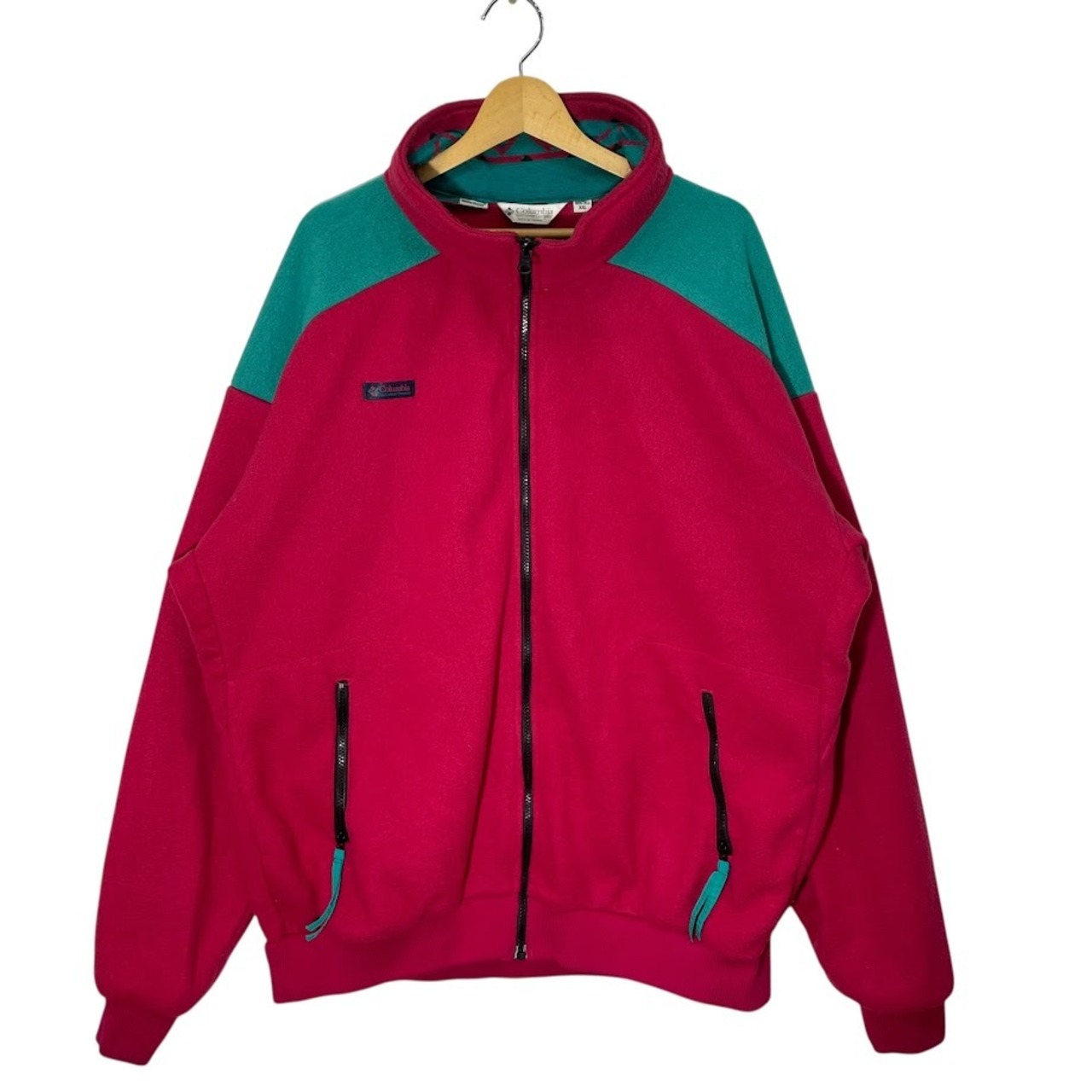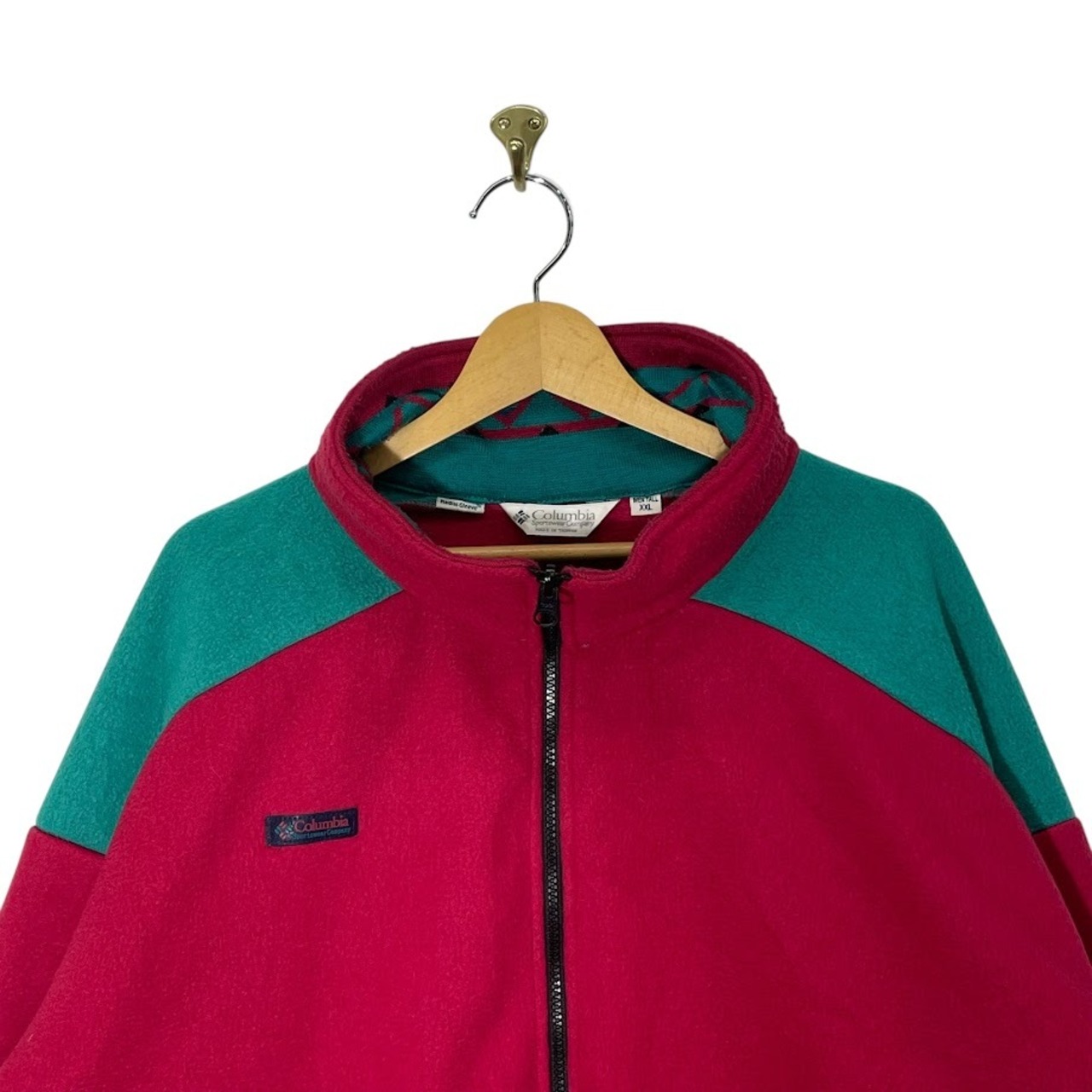 90's vintage 90年代 ヴィンテージ Columbia コロンビア 白タグ フリースジャケット ライトアウター ジャケット 長袖 ワンポイント刺繡 オーバーサイズ ビッグシルエット TAIWAN製 XXLサイズ レッド エメラルドグリーン | OASISCLOTHING 海外古着屋【公式】通販サイト
