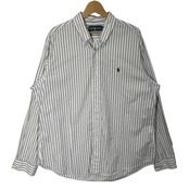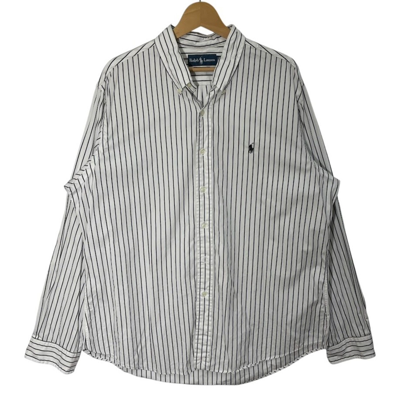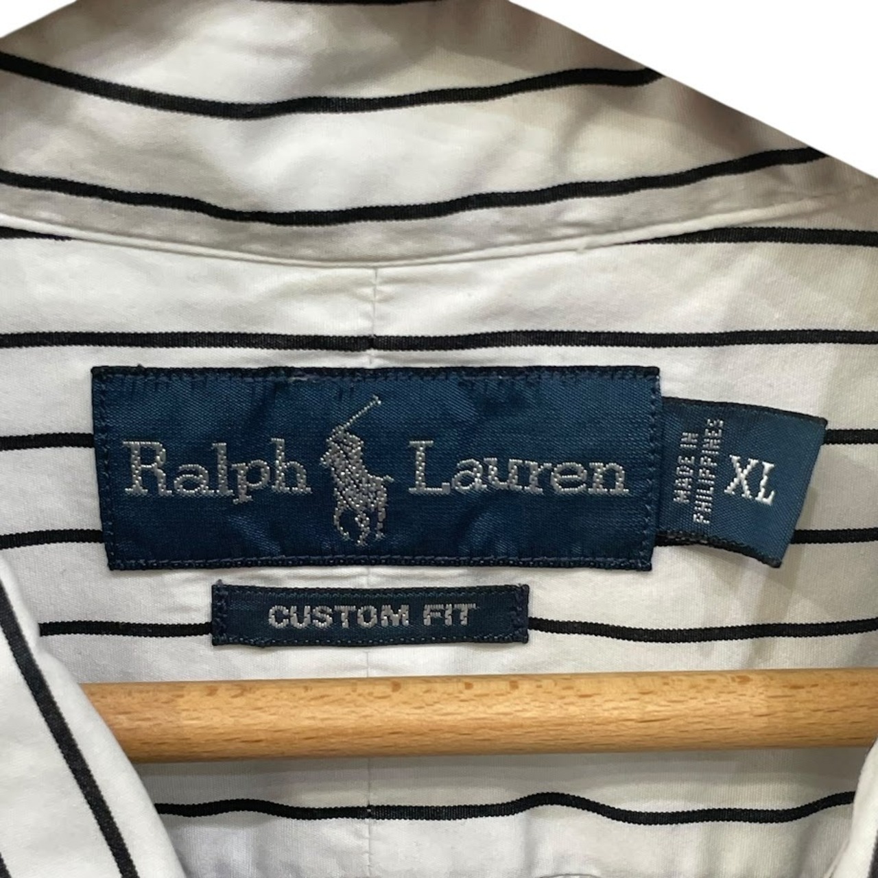 Ralph Lauren CUSTOM FIT ラルフローレン ストライプシャツ ポニー 長袖 シャツ ボタンダウン ワンポイント刺繡 オーバーサイズ ビッグシルエット フィリピン製 XLサイズ ホワイト ブラック | OASISCLOTHING 海外古着屋【公式】通販サイト