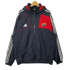 adidas アディダス MUSTER RUGBY スリーライン ラグビーチーム マンスター・ラグビー フード ライトアウター ナイロンジャケット フロントプリント オーバーサイズ ビッグシルエット CHINA製 Lサイズ レッド ブラック | OASISCLOTHING 海外古着屋【公式】通販サイト
