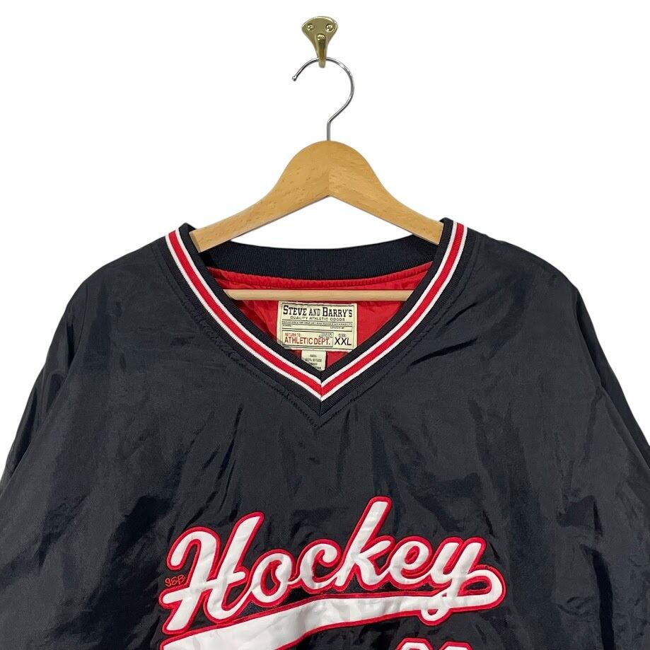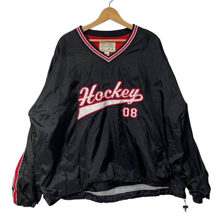 90's vintage 90年代 ヴィンテージ STEVE&BARRY'S ナイロンプルオーバー ホッケー チーム スポーツ ホッケージャージ プルオーバー 長袖 ドローコード フロント刺繍 オーバーサイズ ジャージ PAKISTAN製 XXLサイズ ブラック | OASISCLOTHING 海外古着屋【公式】通販サイト