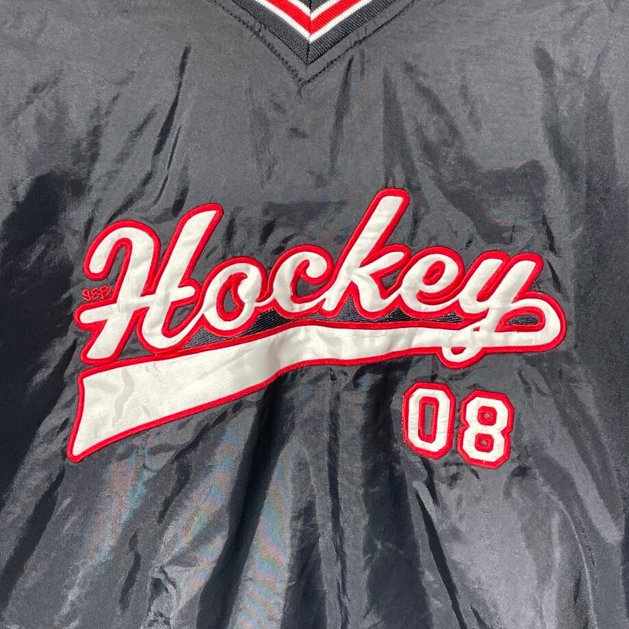 商品名:90's vintage 90年代 ヴィンテージ STEVE&BARRY'S ナイロンプルオーバー ホッケー チーム スポーツ ホッケージャージ プルオーバー 長袖 ドローコード フロント刺繍 オーバーサイズ ジャージ PAKISTAN製 XXLサイズ ブラック