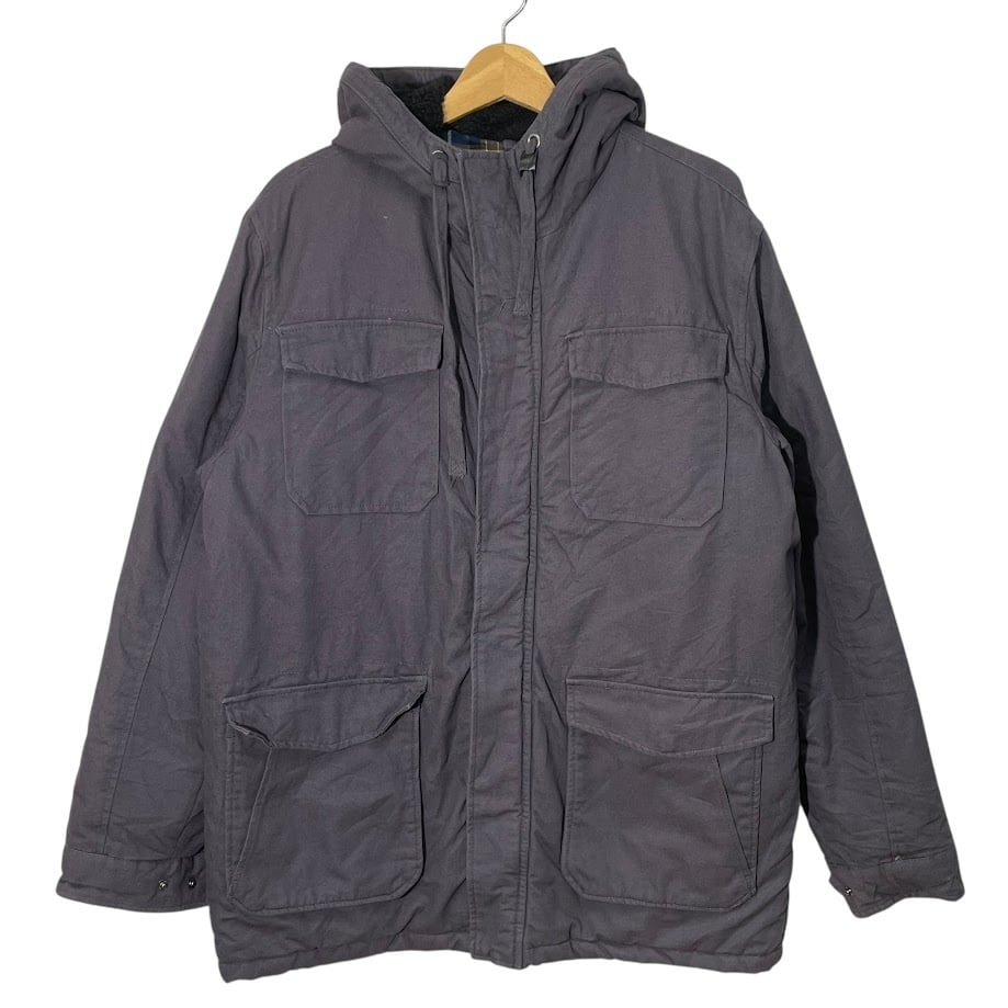商品名:OUTDOOR LIFE ダックハンティングジャケット タッグ地 チェック柄ライナー フードボア キルティングライナー フーディー アウター ジャケット ドローコード CHINA製 Mサイズ グレー