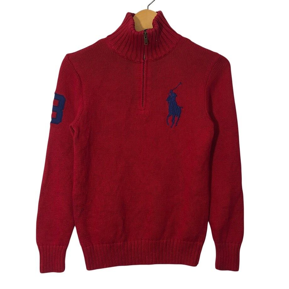 商品名:90's vintage 90年代 ヴィンテージ Polo by Ralph Lauren ポロバイラルフローレン ハーフジップタートルニット セーター ビッグポニー キッズ レディース ハーフジップ ワンポイント刺繡 CHINA製 Mサイズ レッド
