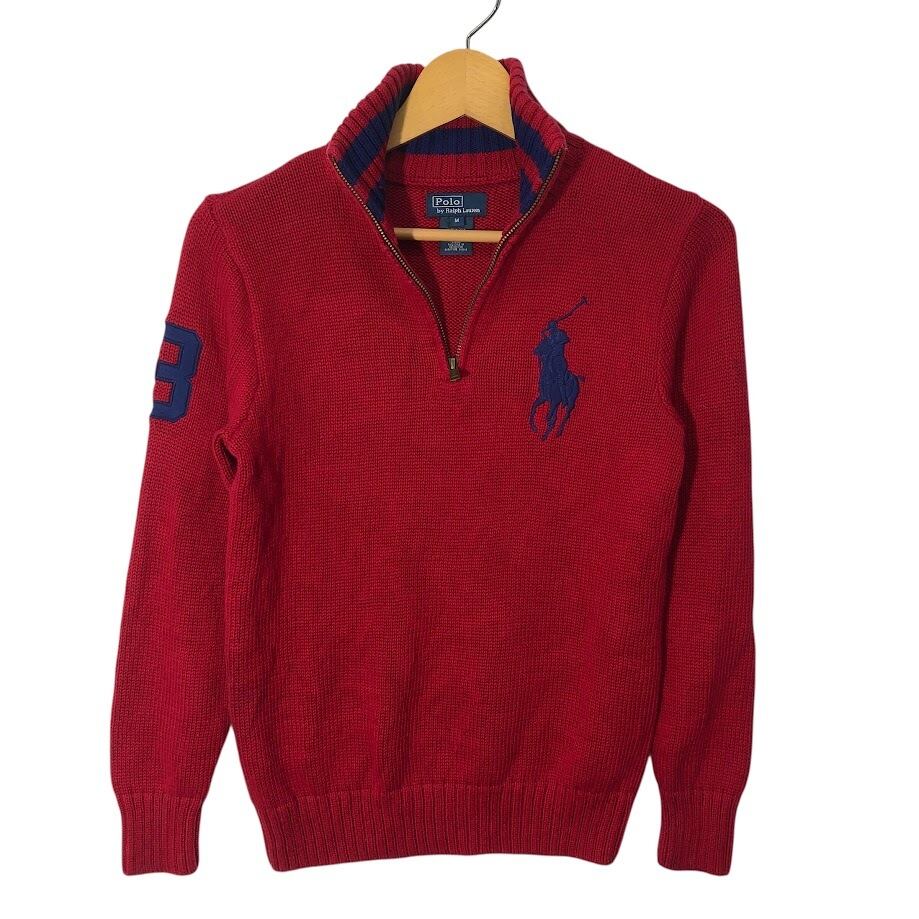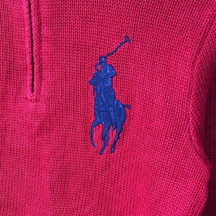 90's vintage 90年代 ヴィンテージ Polo by Ralph Lauren ポロバイラルフローレン ハーフジップタートルニット セーター ビッグポニー キッズ レディース ハーフジップ ワンポイント刺繡 CHINA製 Mサイズ レッド | OASISCLOTHING 海外古着屋【公式】通販サイト