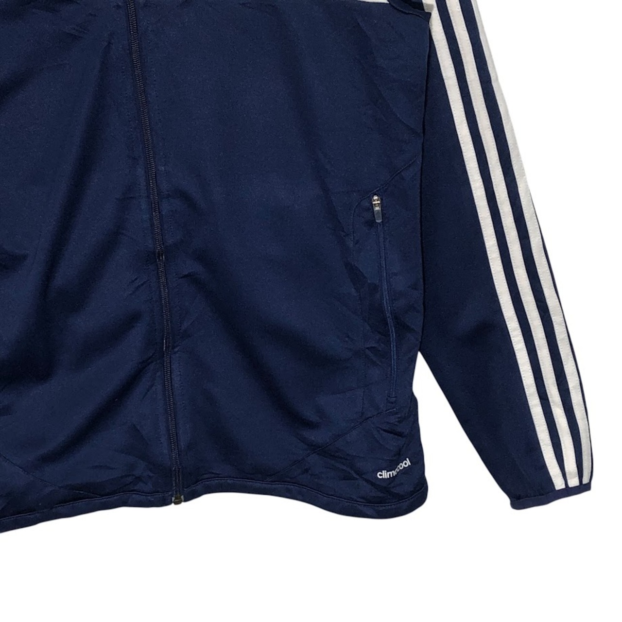 商品名:adidas アディダス climacool stett soccer club スリーライン チーム サッカー ライトアウター ワンポイントプリント刺繍 トラックジャケット ジャージ CHINA製 Sサイズ ネイビー