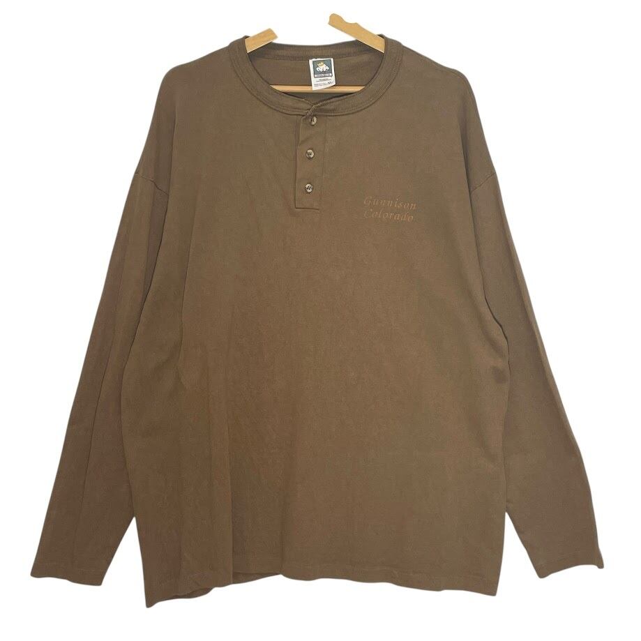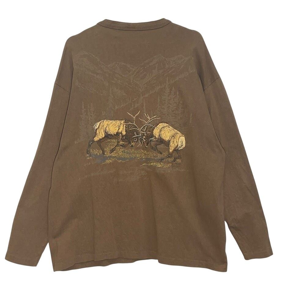 90's/90年代ヴィンテージ COTTON DELUXE USA製 ヘンリーネック 鹿 アニマルプリント 長袖 ロンT バックプリント ワンポイントプリント オーバーサイズ ビックシルエット USA製 メンズ XL ブラウン | OASISCLOTHING 海外古着屋【公式】通販サイト