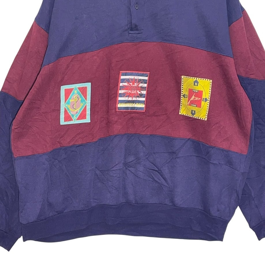 EROS ワッペン刺繍 カラーブロックデザイン 長袖 ポロシャツ フロント刺繍 ワンポイント刺繡 オーバーサイズ ビックシルエット メンズ XL パープル/ワインレッド/その他 | OASISCLOTHING 海外古着屋【公式】通販サイト
