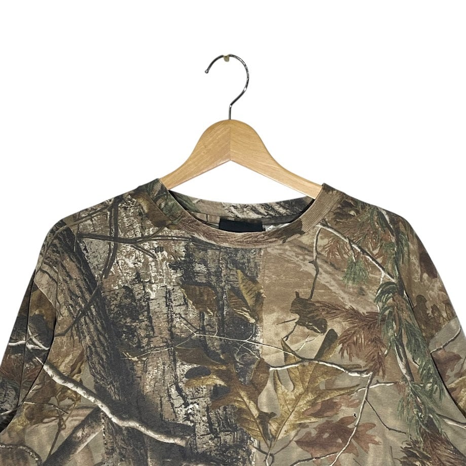 REAL TREE リアルツリー 総柄 迷彩 カモフラージュ 長袖 ロンT プリント オーバーサイズ ビックシルエット パキスタン製 XLサイズ ブラウン カーキ | OASISCLOTHING 海外古着屋【公式】通販サイト