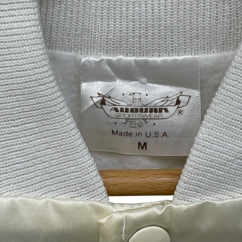 商品名:AUBURN 90年代/90’s ヴィンテージ スタジャン USA製 ナイロンジャケット ブルゾン フロントプリント バックプリント Mサイズ ホワイト