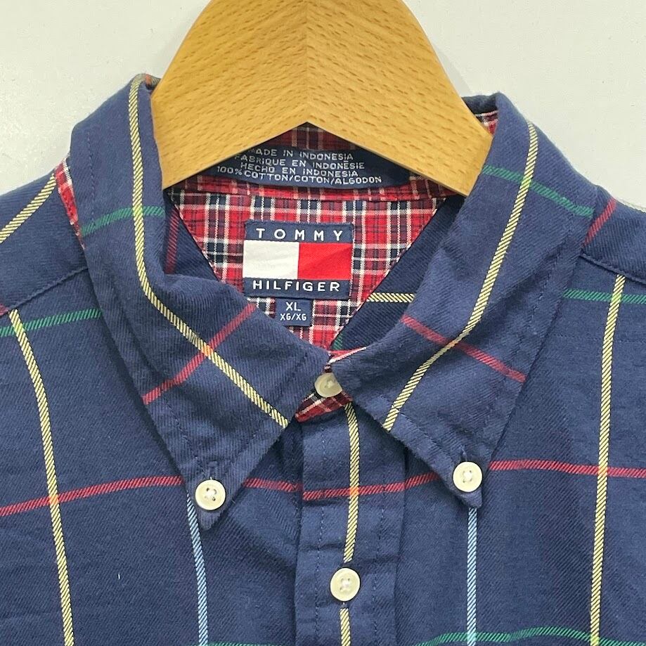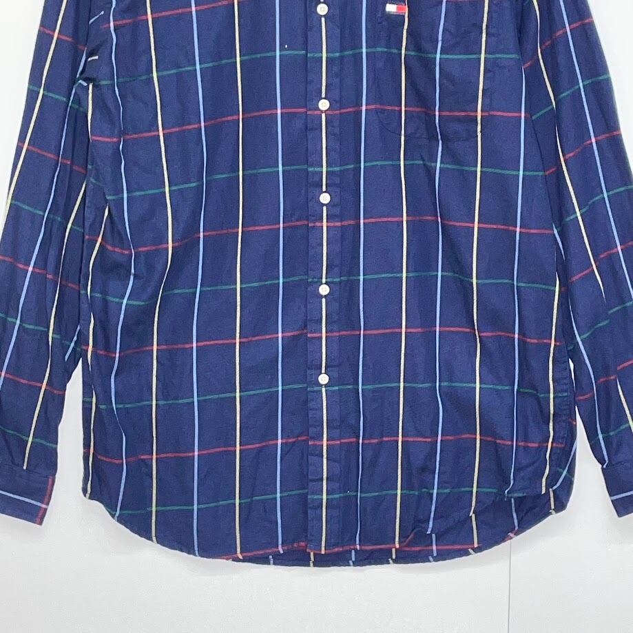 90's/90年代ヴィンテージ TOMMY HILFIGER/トミーヒルフィガー フラッグタグ チェック柄 長袖 シャツ ワンポイント刺繡 オーバーサイズ ビックシルエット インドネシア製 メンズ XL ネイビー/その他 | OASISCLOTHING 海外古着屋【公式】通販サイト