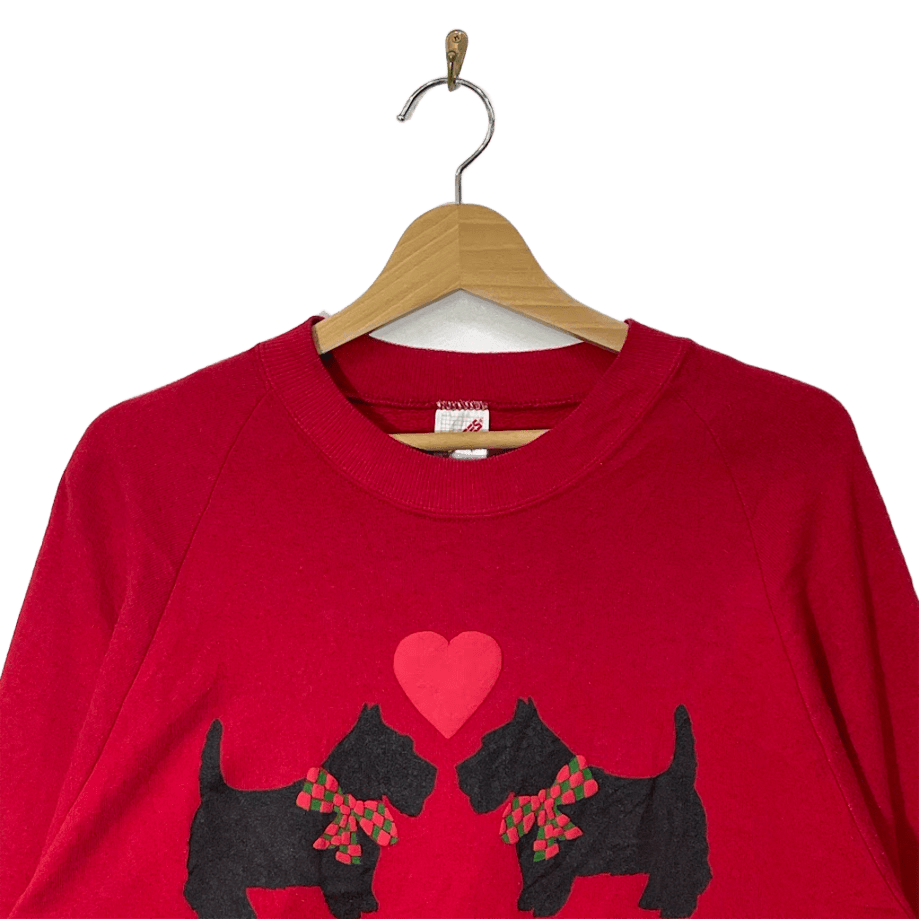 80~90's vintage 80~90年代 ヴィンテージ JERZEES ジャージーズ アニマルプリント 犬 DOG ハート スウェット トレーナー 長袖 フロントプリント オーバーサイズ ビックシルエット U.S.A製 XLサイズ レッド | OASISCLOTHING 海外古着屋【公式】通販サイト