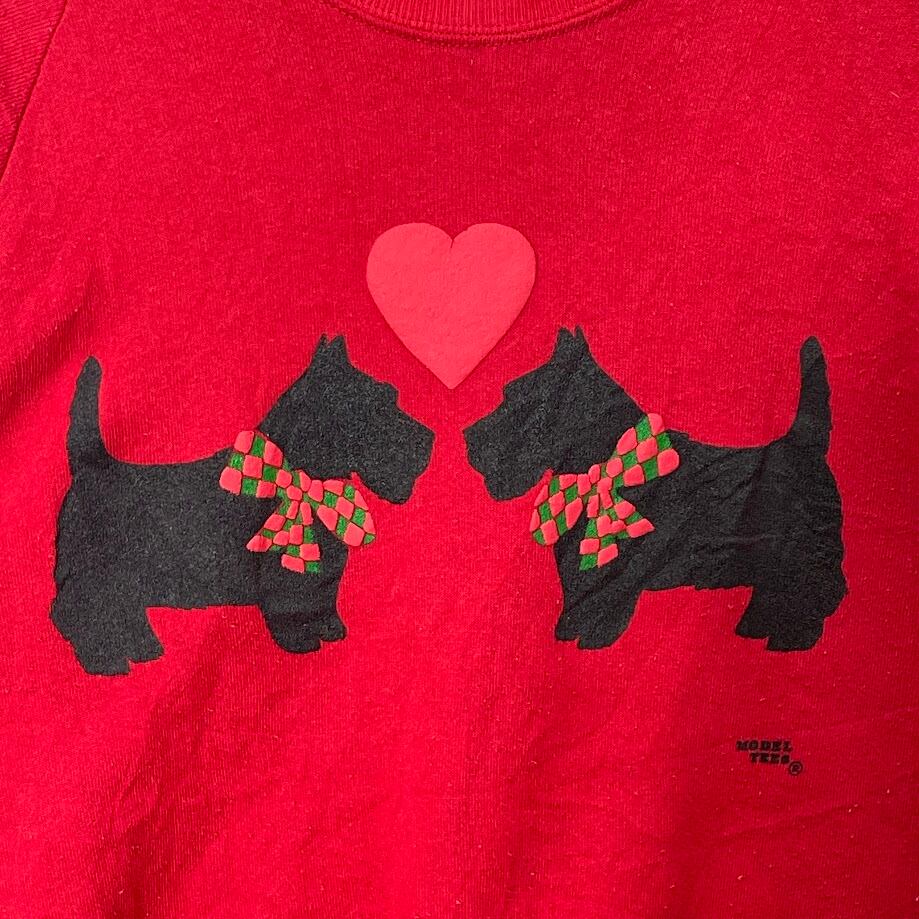 商品名:80~90's vintage 80~90年代 ヴィンテージ JERZEES ジャージーズ アニマルプリント 犬 DOG ハート スウェット トレーナー 長袖 フロントプリント オーバーサイズ ビックシルエット U.S.A製 XLサイズ レッド