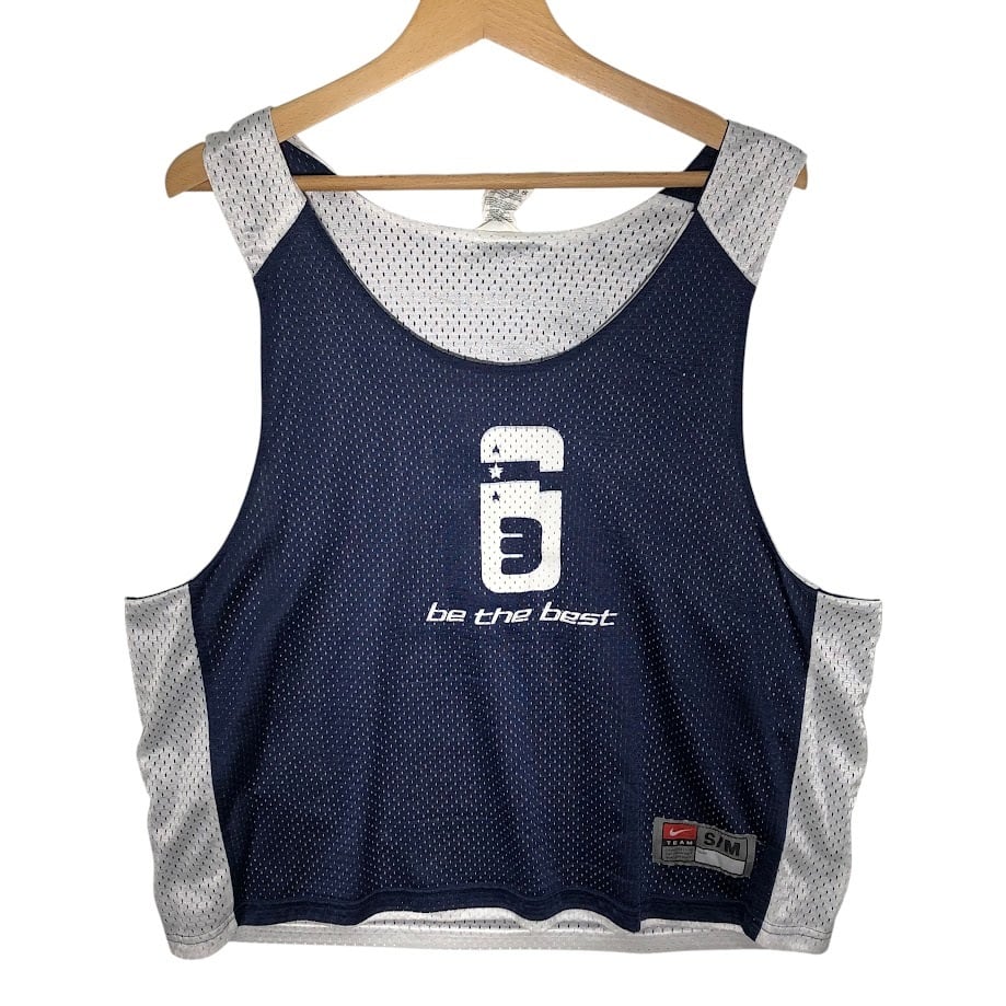 NIKE ナイキ リバーシブル タンクトップ メッシュ ゲームシャツ チーム スポーツ バスケット フロントバックプリント ワンポイント刺繡 インドネシア製 Mサイズ ホワイト ネイビー | OASISCLOTHING 海外古着屋【公式】通販サイト