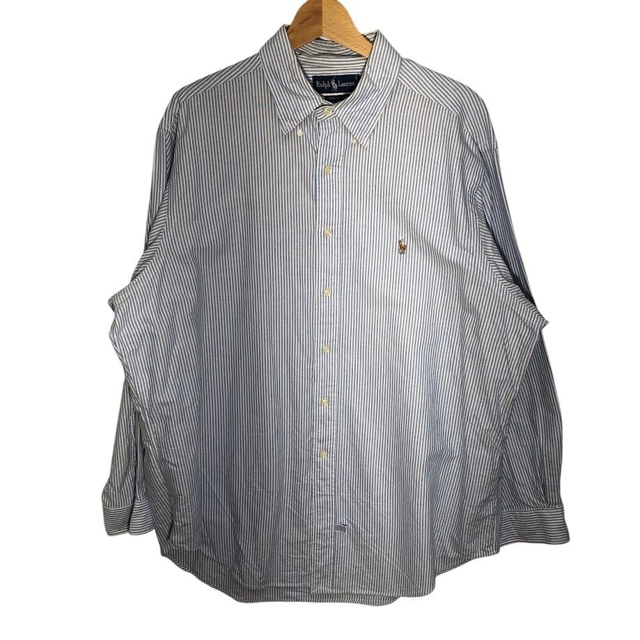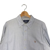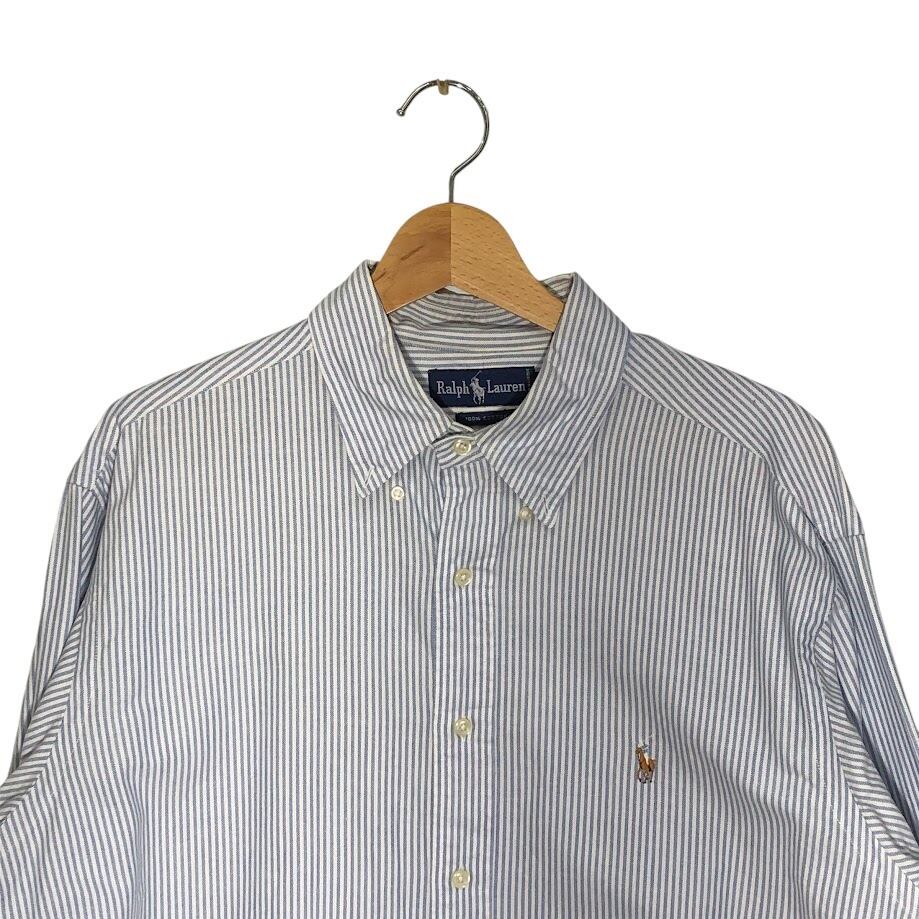 Ralph Lauren ラルフローレン ストライプシャツ 長袖 シャツ ボタンダウン ワンポイントポニー刺繡 オーバーサイズ ビッグシルエット MAURITIUS製 17-35サイズ ブルー ホワイト | OASISCLOTHING 海外古着屋【公式】通販サイト