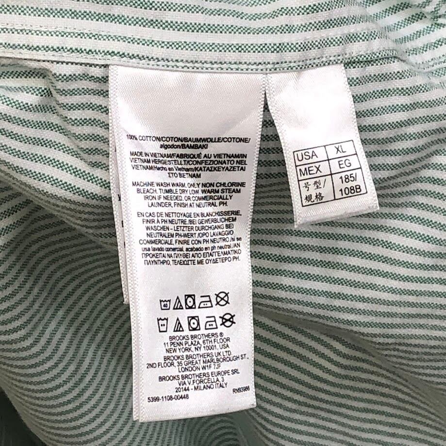 Brooks Brothers Est.1818 ブルックスブラザーズ ストライプシャツ 長袖 シャツ ボタンダウン オーバーサイズ ビッグシルエット ベトナム製 XLサイズ グリーン ホワイト | OASISCLOTHING 海外古着屋【公式】通販サイト