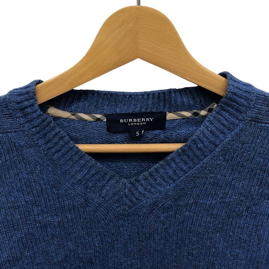 商品名:BURBERRY LONDON/バーバリーロンドン Vネック ニット セーター ワンポイント刺繡 メンズ 5サイズ ブルー
