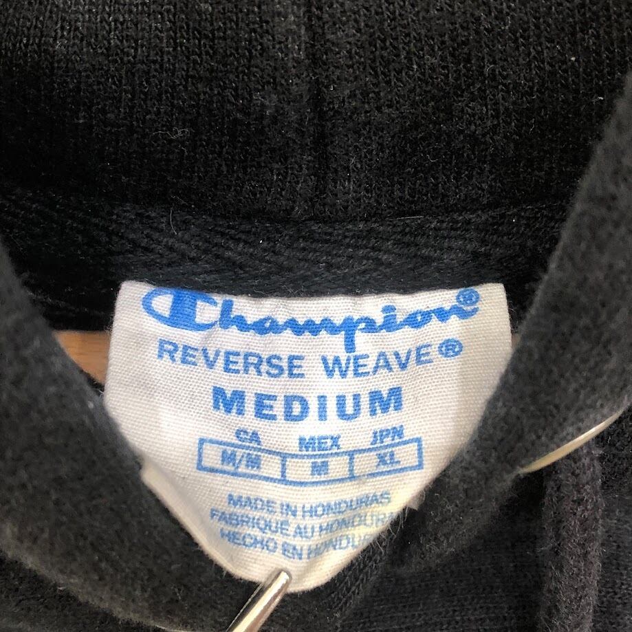 商品名: ヴィンテージ Champion REVRSE WEAVE/チャンピオンリバースウィーブ パーカー フーディー プルオーバー 袖刺繍 ワンポイント刺繡 オーバーサイズ ビッグシルエット HONDURAS製 メンズ XL ブラック