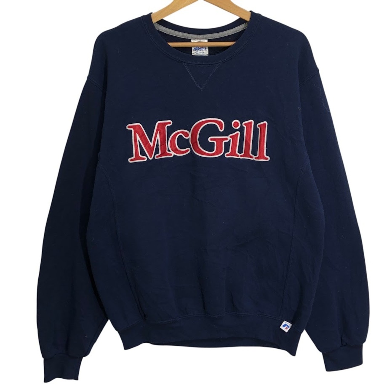 00's/00年代ヴィンテージ RUSSELL ATHLETIC/ラッセルアスレチック カレッジ リバースウィーブ織り McGill クルーネック マギル大学 スウェット トレーナー 長袖 フロント刺繍 HONDURAS製 メンズ M ネイビー | OASISCLOTHING 海外古着屋【公式】通販サイト