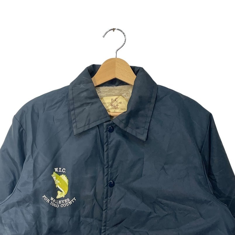 80's vintage 80年代 ヴィンテージ F&C SPORTS WEAR 企業プリント ボアコーチジャケット アウター ナイロンジャケット ドローコード スナップボタン フロントバックプリント 企業ロゴプリント Sサイズ ネイビー | OASISCLOTHING 海外古着屋【公式】通販サイト