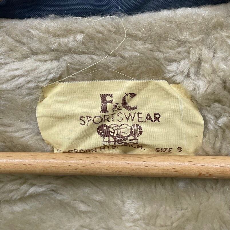 商品名:80's vintage 80年代 ヴィンテージ F&C SPORTS WEAR 企業プリント ボアコーチジャケット アウター ナイロンジャケット ドローコード スナップボタン フロントバックプリント 企業ロゴプリント Sサイズ ネイビー