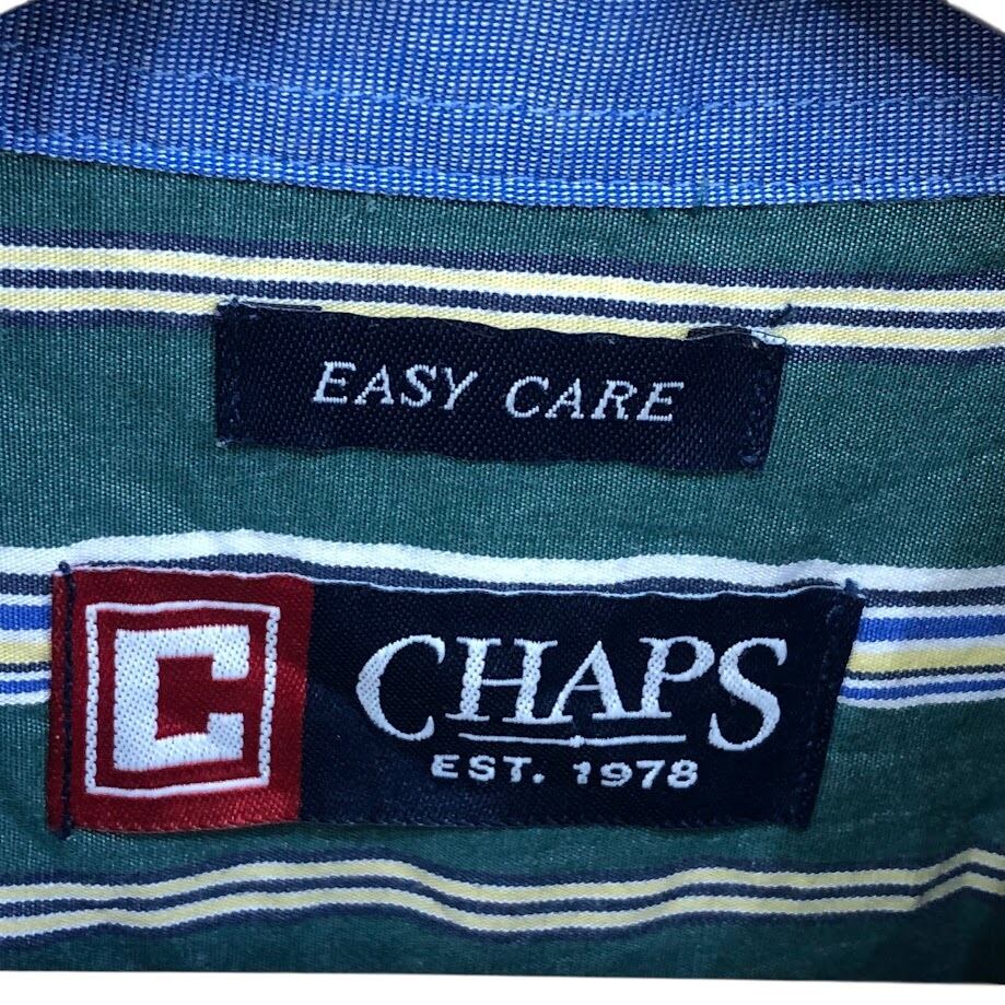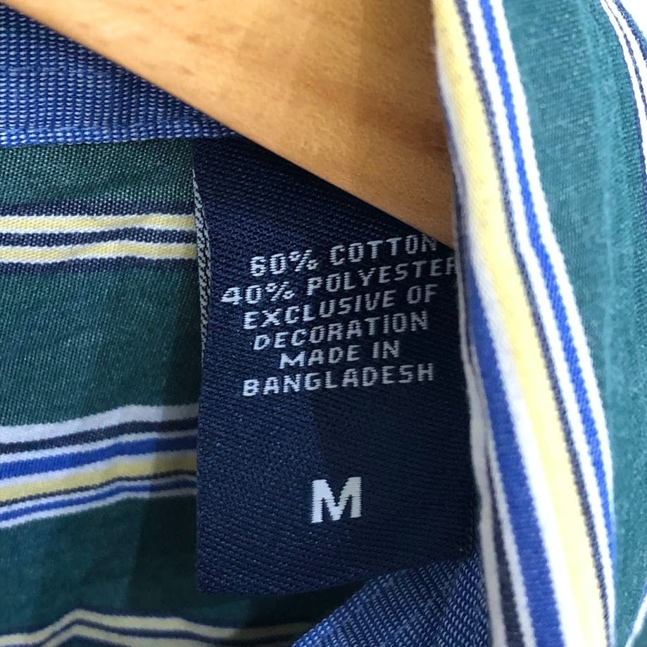 商品名:CHAPS/チャップス EASY CARE ストライプ 長袖 シャツ ボタンダウン BANGLADESH製 メンズ M グリーン/その他