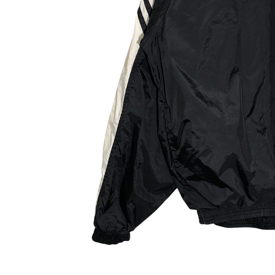 商品名:00's vintage 00年代 ヴィンテージ adidas アディダス PORTAGE SOFTBALL スリーライン チーム ロゴ プルオーバー ナイロンジャケット 企業ロゴ刺繍 オーバーサイズ Vネック THAILAND製 Lサイズ ブラック