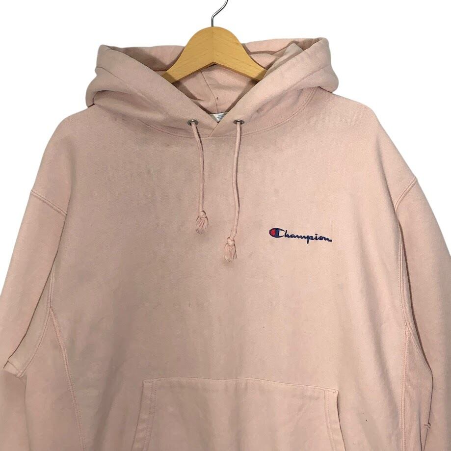 Champion チャンピオン REVERSE WEAVE リバースウィーブ ロゴデザイン パーカー フーディー プルオーバー 長袖 ワンポイント刺繡 オーバーサイズ ビックシルエット HONDURAS製 2XLサイズ ピンク | OASISCLOTHING 海外古着屋【公式】通販サイト