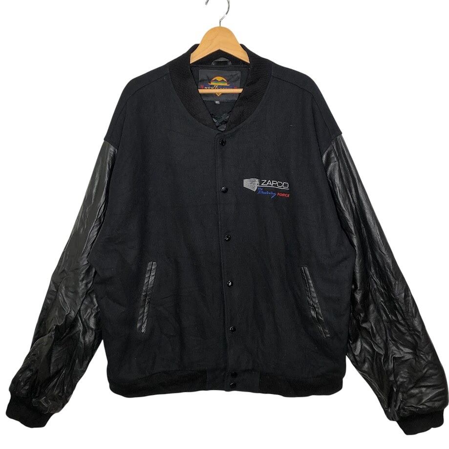 NEW ZLANDER スタジャン 袖レザー アウター ブルゾン フロント刺繍 バック刺繍 オーバーサイズ ビックシルエット 3XL ブラック | OASISCLOTHING 海外古着屋【公式】通販サイト