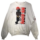商品名:JERZEES/ジャージーズ 90年代 vintage USA製 HEARNサイン有 スウェット トレーナー フロントバック袖プリント XLサイズ ホワイト