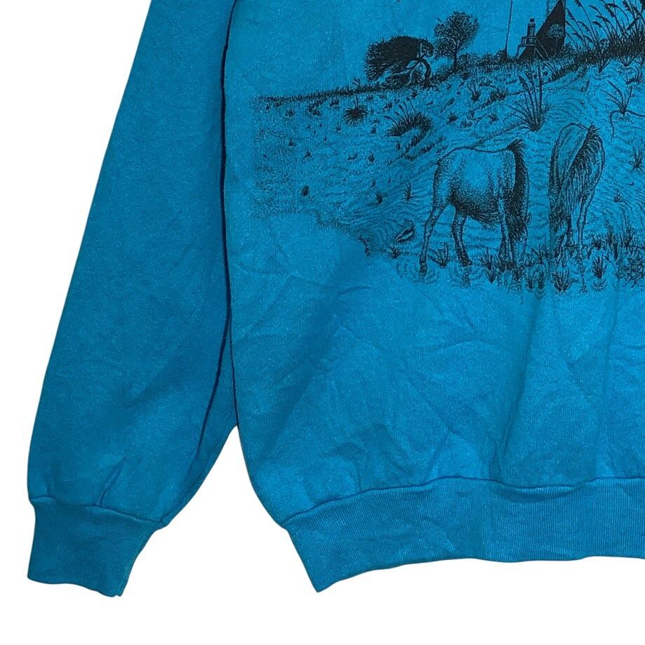 商品名:FRUIT OF THE LOOM/フルーツオブザルーム 90年代/90's USA製 スウェット トレーナー フロントプリント バックプリント XLサイズ ターコイズブルー