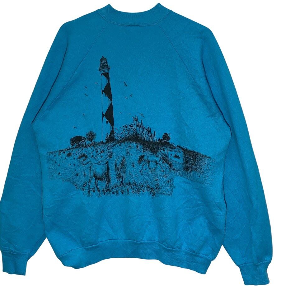 FRUIT OF THE LOOM/フルーツオブザルーム 90年代/90's USA製 スウェット トレーナー フロントプリント バックプリント XLサイズ ターコイズブルー | OASISCLOTHING 海外古着屋【公式】通販サイト