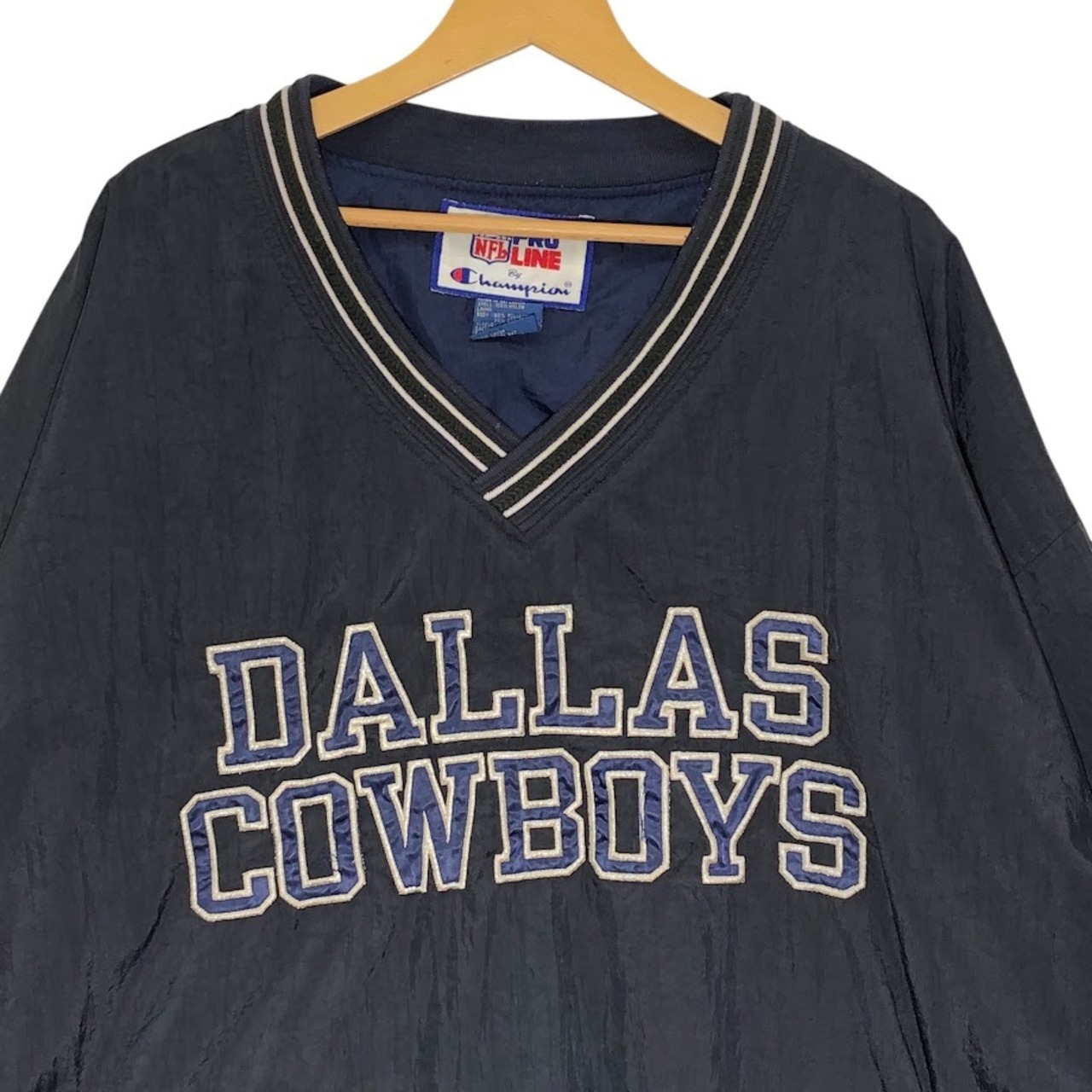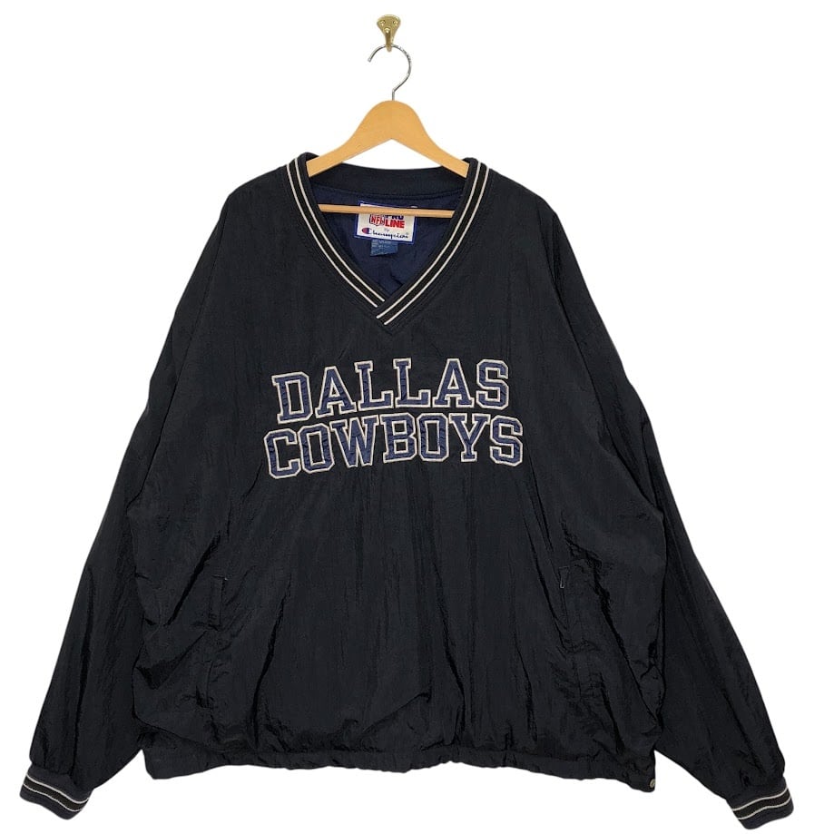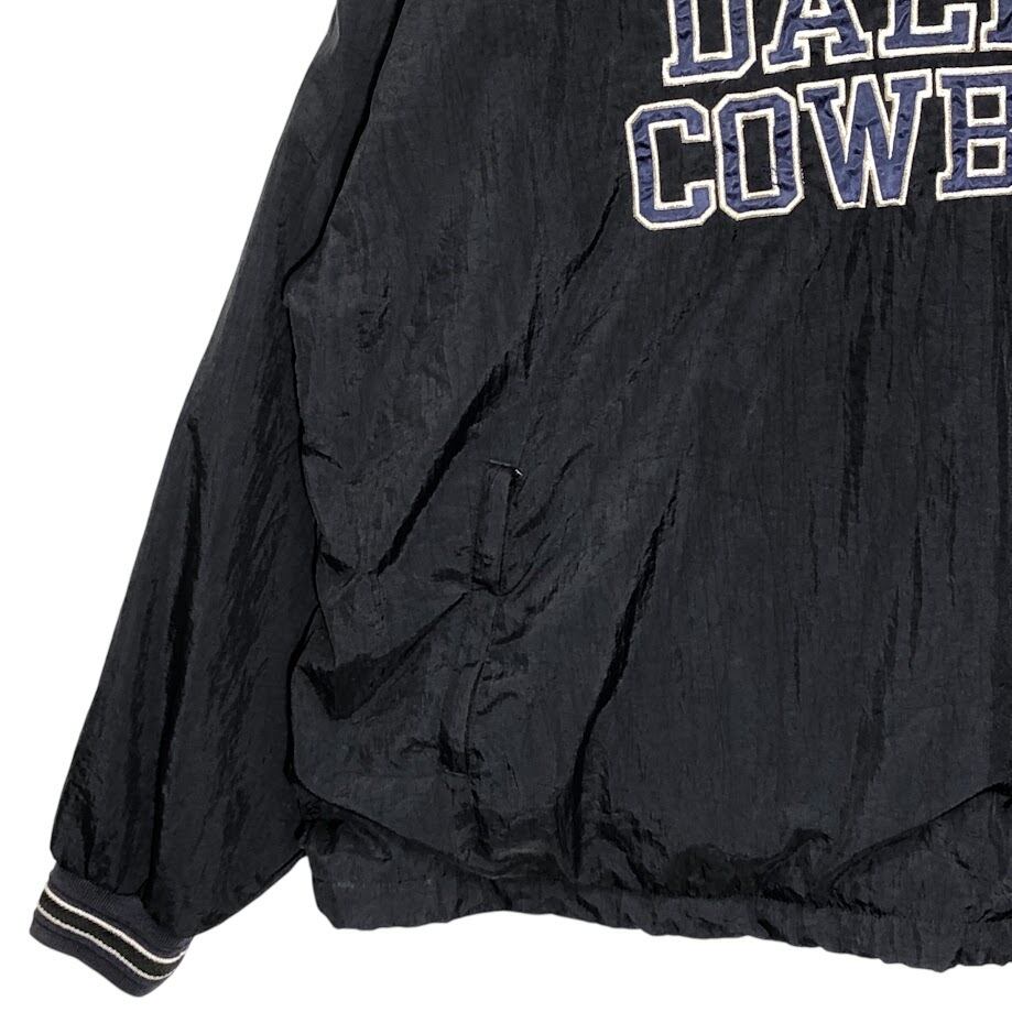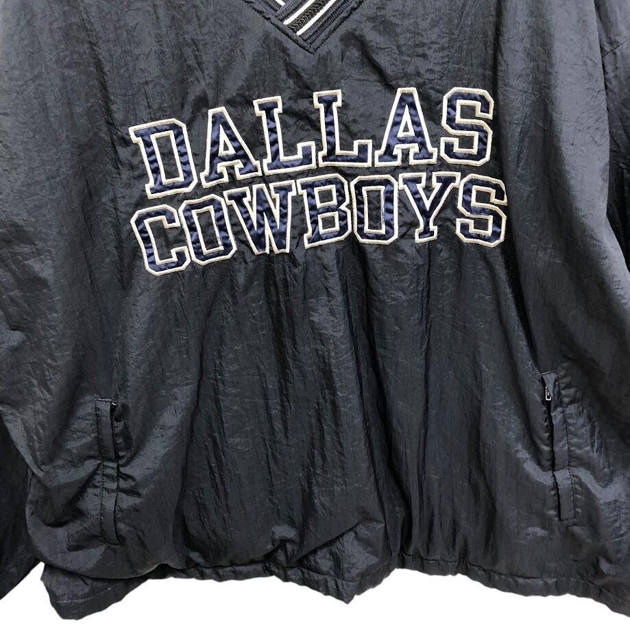 NFL PROLINE by Champion DAJJAS COWBOYS ナイロンプルオーバー ライトアウター ジャケット シャツ フロント刺繡 オーバーサイズ ビックシルエット Vネック SRILANKA製 XXLサイズ ブラック | OASISCLOTHING 海外古着屋【公式】通販サイト