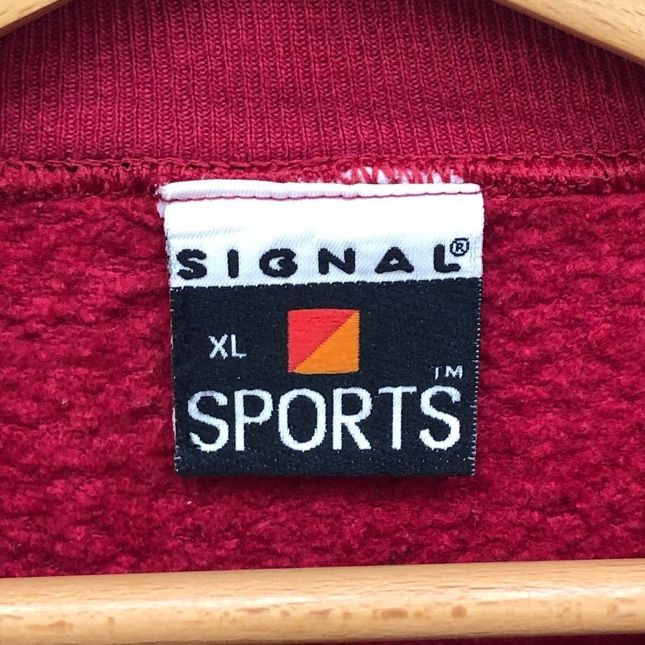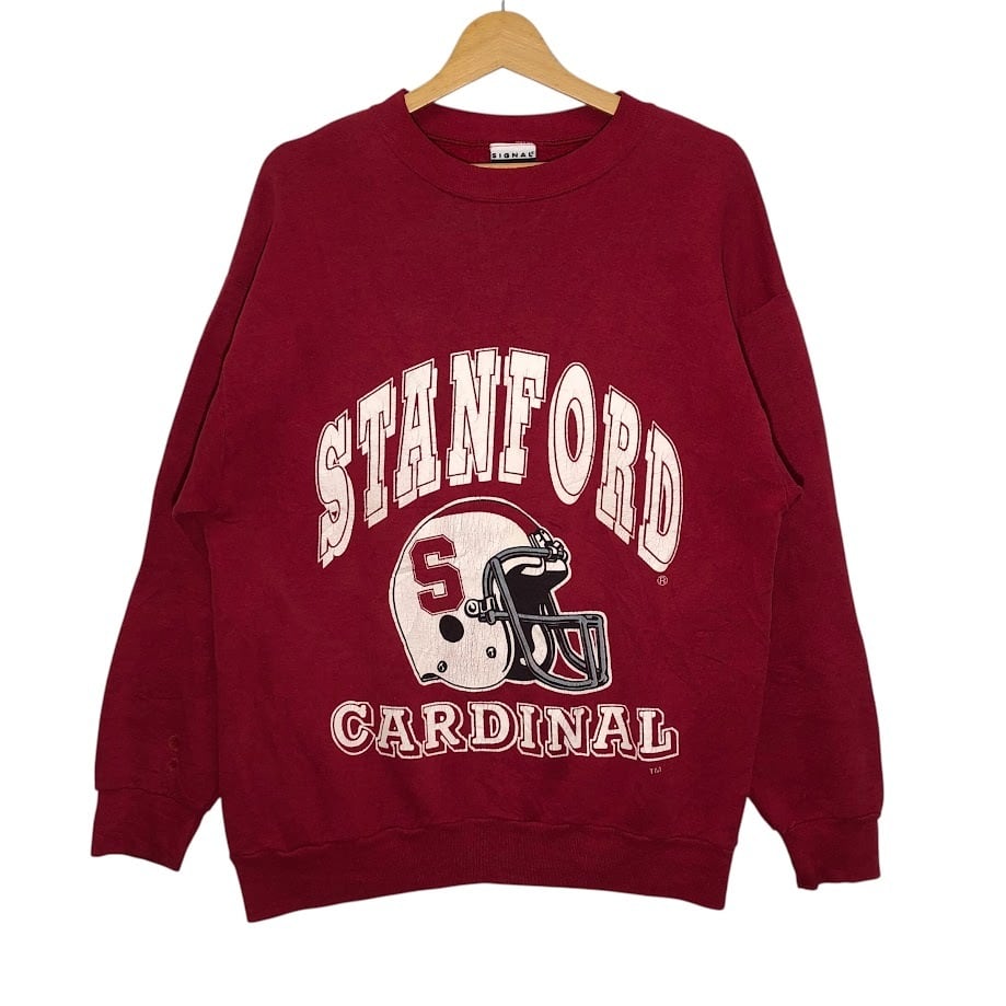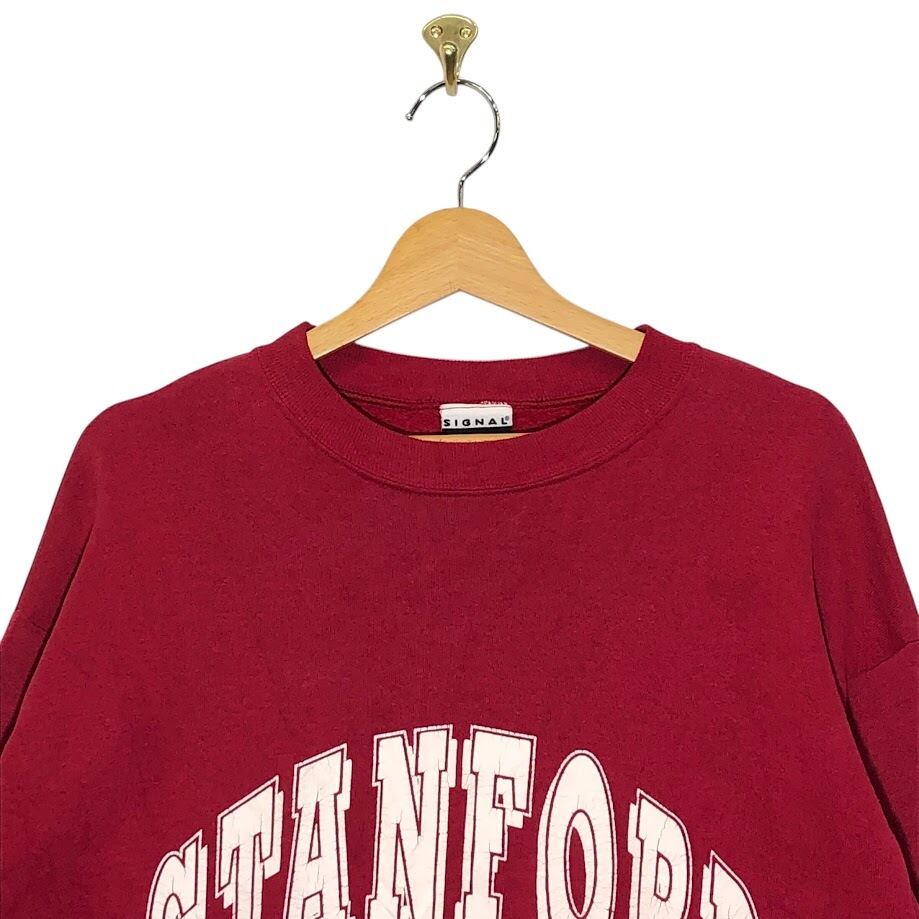 90's vintage 90年代 ヴィンテージ SIGNAL SPORTS シグナルスポーツ STANFORD カレッジプリント スポーツ チーム スウェット トレーナー 長袖 フロントプリント オーバーサイズ クルーネック USA製 XLサイズ レッド | OASISCLOTHING 海外古着屋【公式】通販サイト
