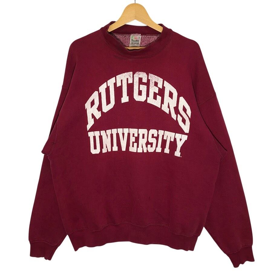 FRUIT OF THE LOOM SUPER COTTON フルーツオブザルーム カレッジプリント ラットガーズ スウェット トレーナー 長袖 フロントプリント オーバーサイズ ビックシルエット USA製 XLサイズ レッド | OASISCLOTHING 海外古着屋【公式】通販サイト