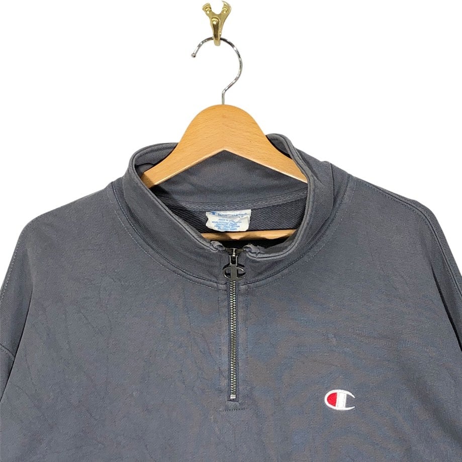 Champion REVERSE WEAVE チャンピオンリバースウィーブ ハーフジップ スウェット トレーナー ワンポイント刺繡 オーバーサイズ CHINA製 XLサイズ ネイビー | OASISCLOTHING 海外古着屋【公式】通販サイト