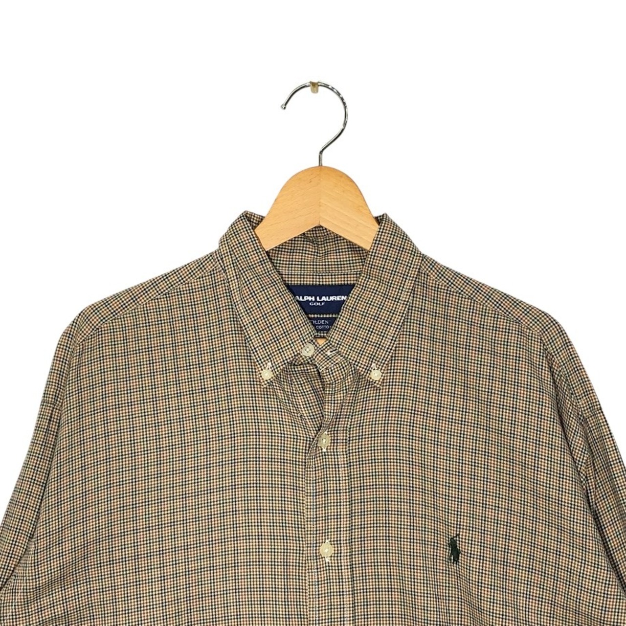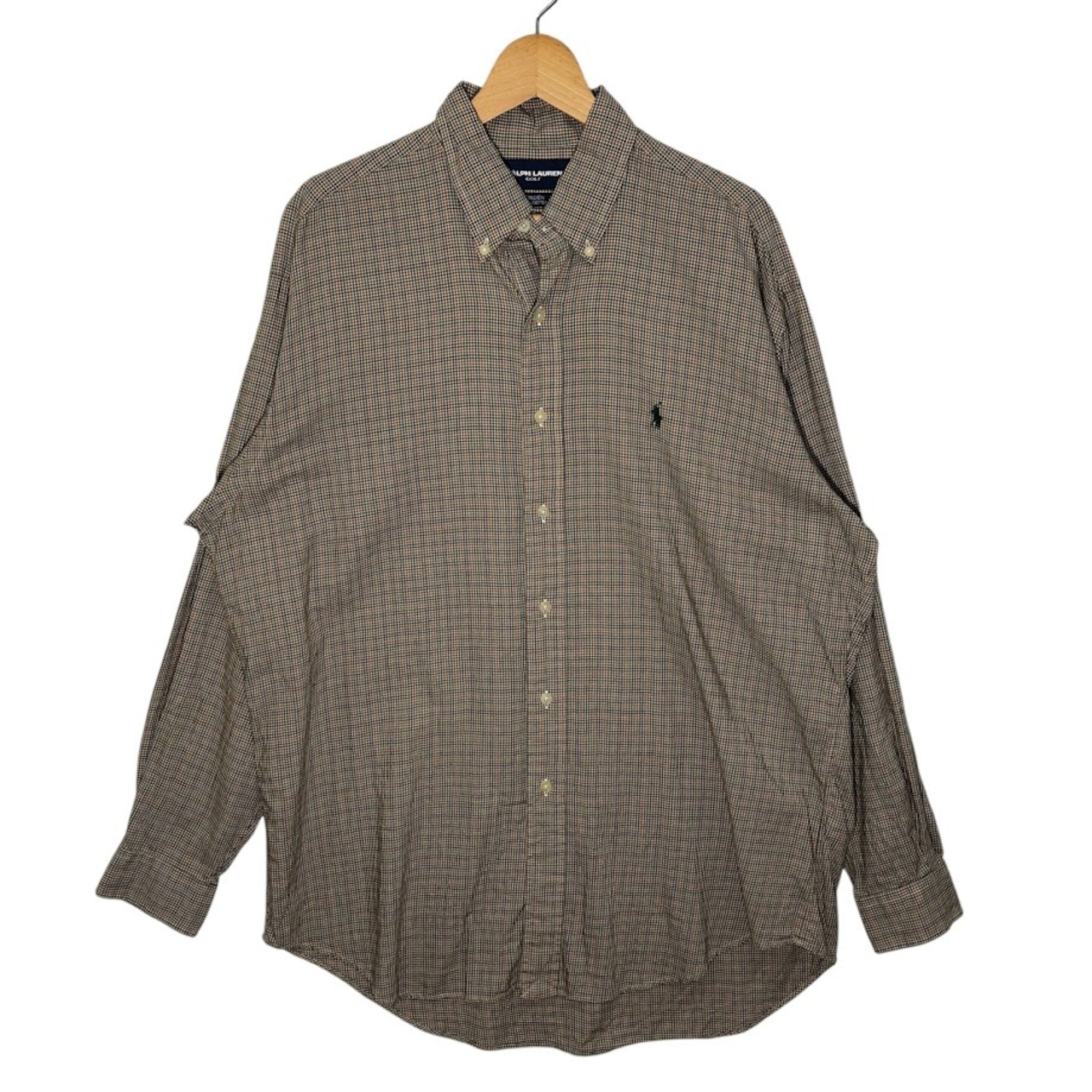 90's vintage 90年代 ヴィンテージ RALPH LAUREN GOLF ラルフローレンゴルフ チェック柄 ポニー刺繍 長袖 シャツ ボタンダウン ワンポイント刺繡 HONGKONG製 Mサイズ ブラウン グリーン ネイビー ホワイト | OASISCLOTHING 海外古着屋【公式】通販サイト