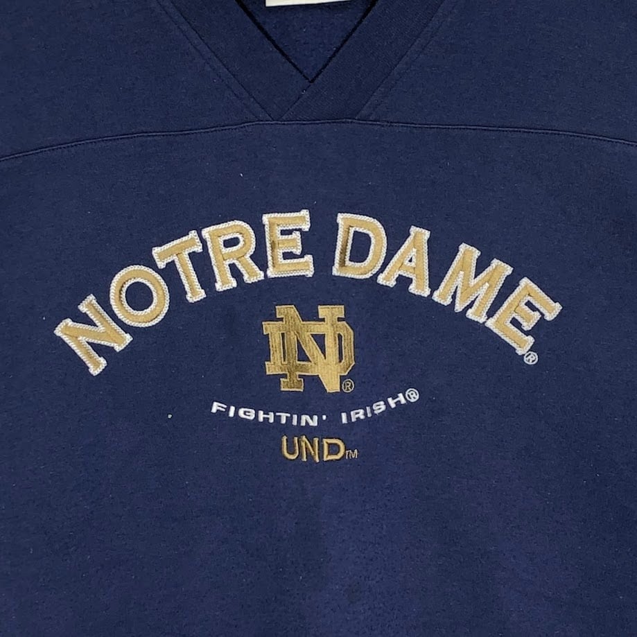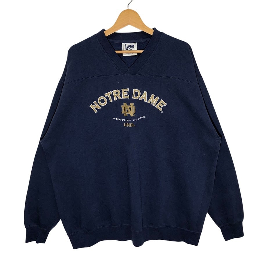 Lee SPORT リースポーツ カレッジ刺繡 ノートルダム大学 スウェット トレーナー 長袖 フロント刺繍 オーバーサイズ ビックシルエット Vネック HONGKONG製 XLサイズ ネイビー | OASISCLOTHING 海外古着屋【公式】通販サイト