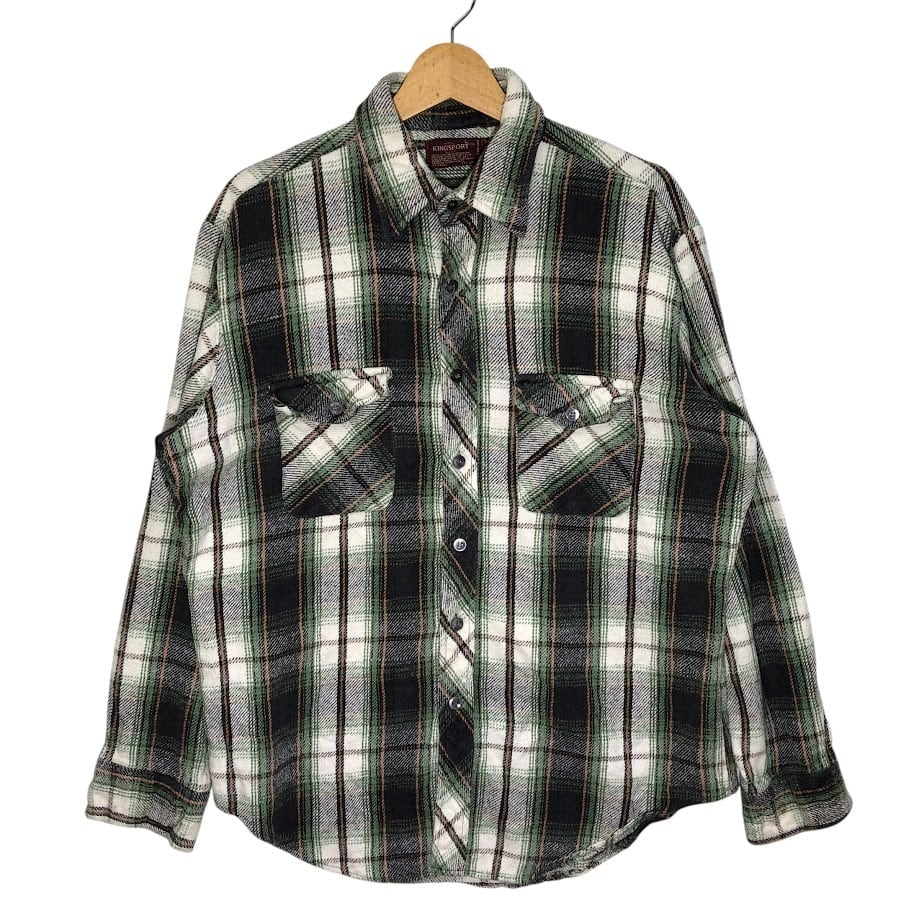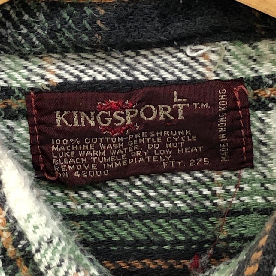 70's vintage 70年代 ヴィンテージ KINGSPORT キングスポーツ ネルシャツ チェック柄 長袖 シャツ HONGKONG製 Lサイズ グレー ホワイト ライトグリーン | OASISCLOTHING 海外古着屋【公式】通販サイト