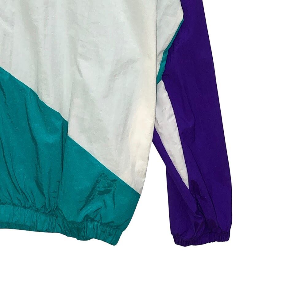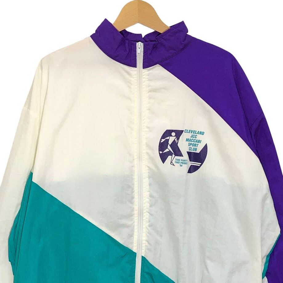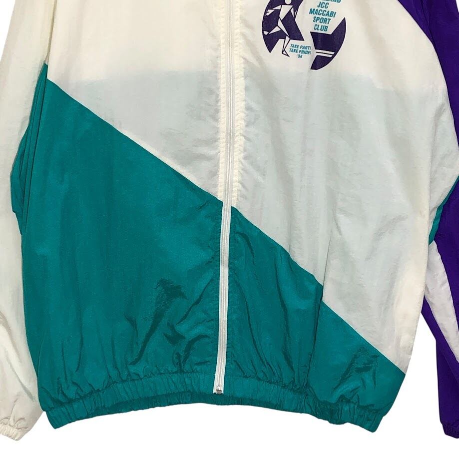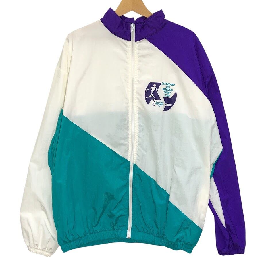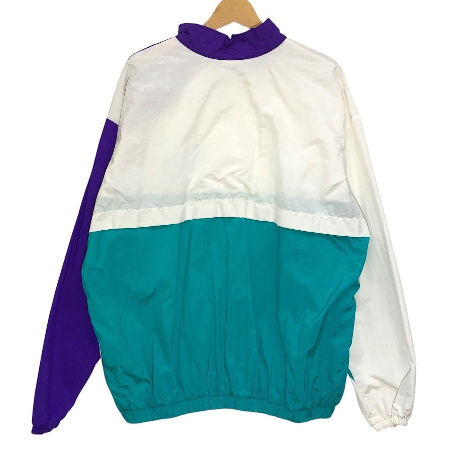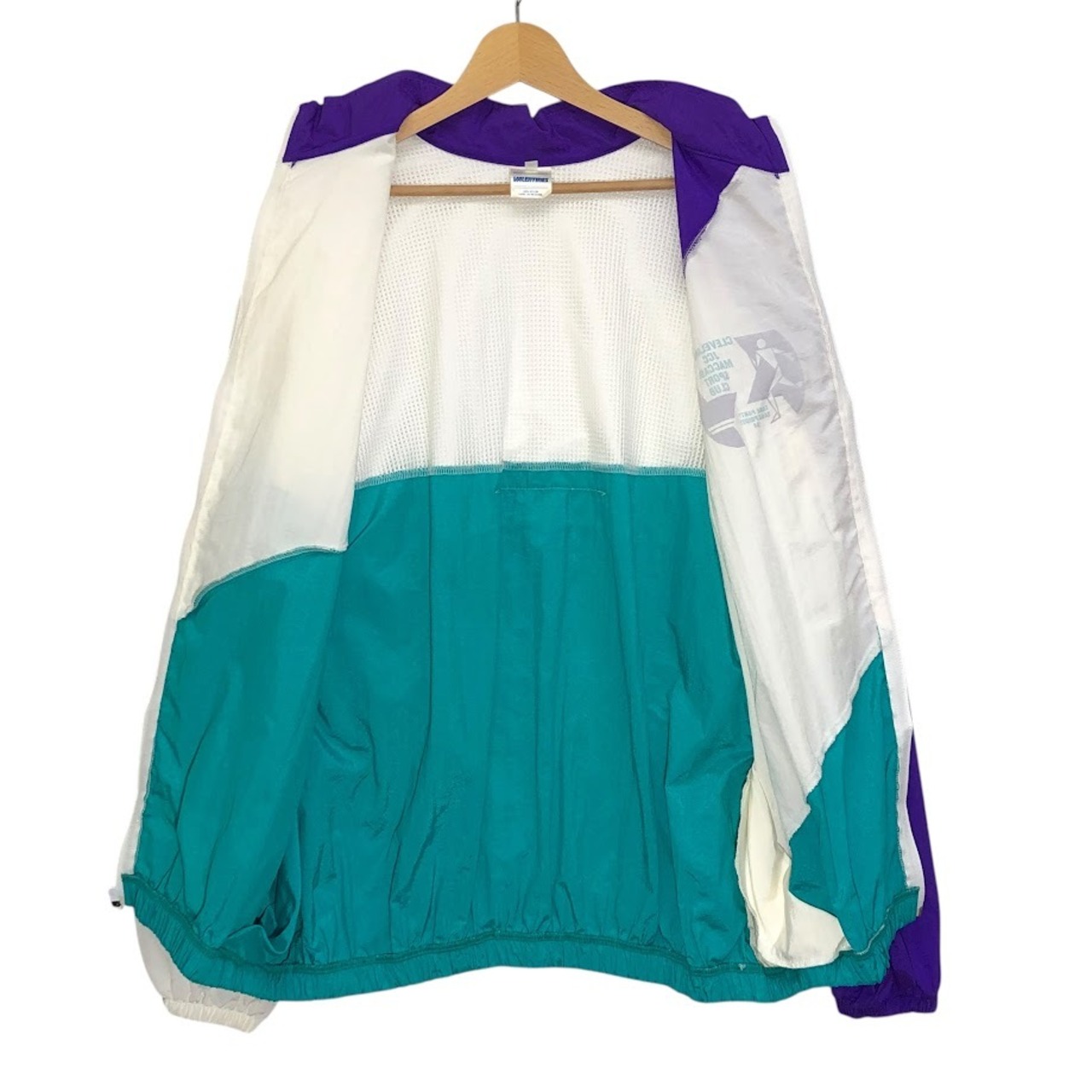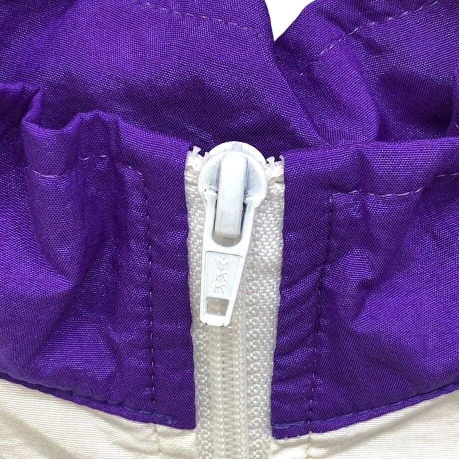 商品名:90's/90年代ヴィンテージ VALENTINES ナイロンジャケット ブルゾン フロント刺繍 メンズ ホワイト/パープル/グリーン