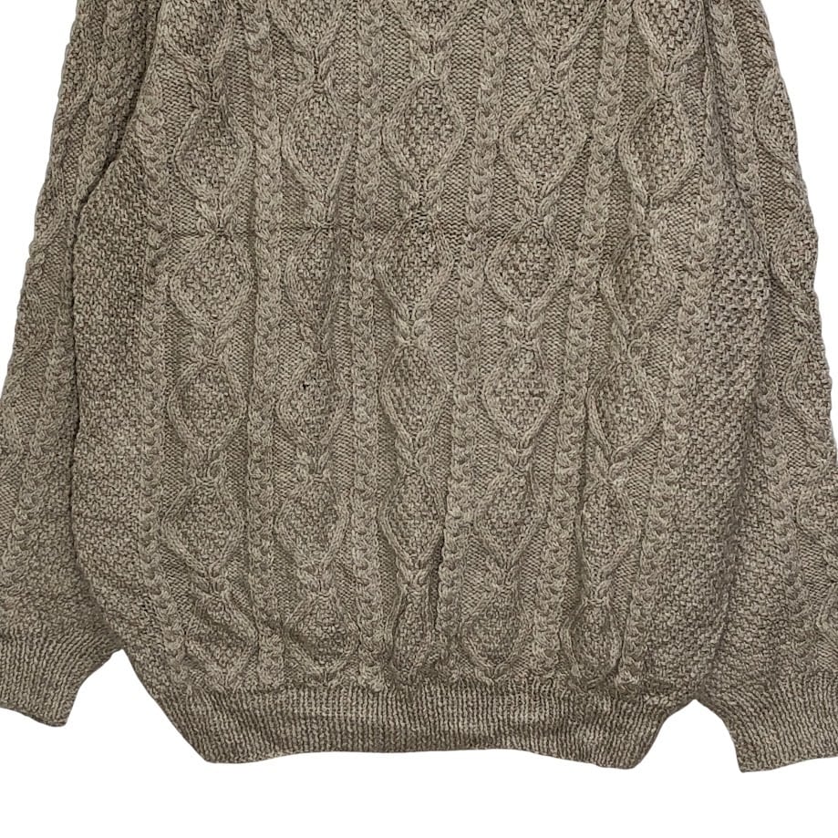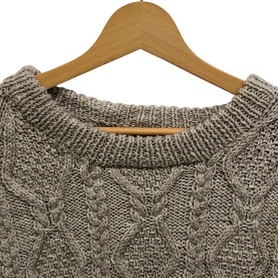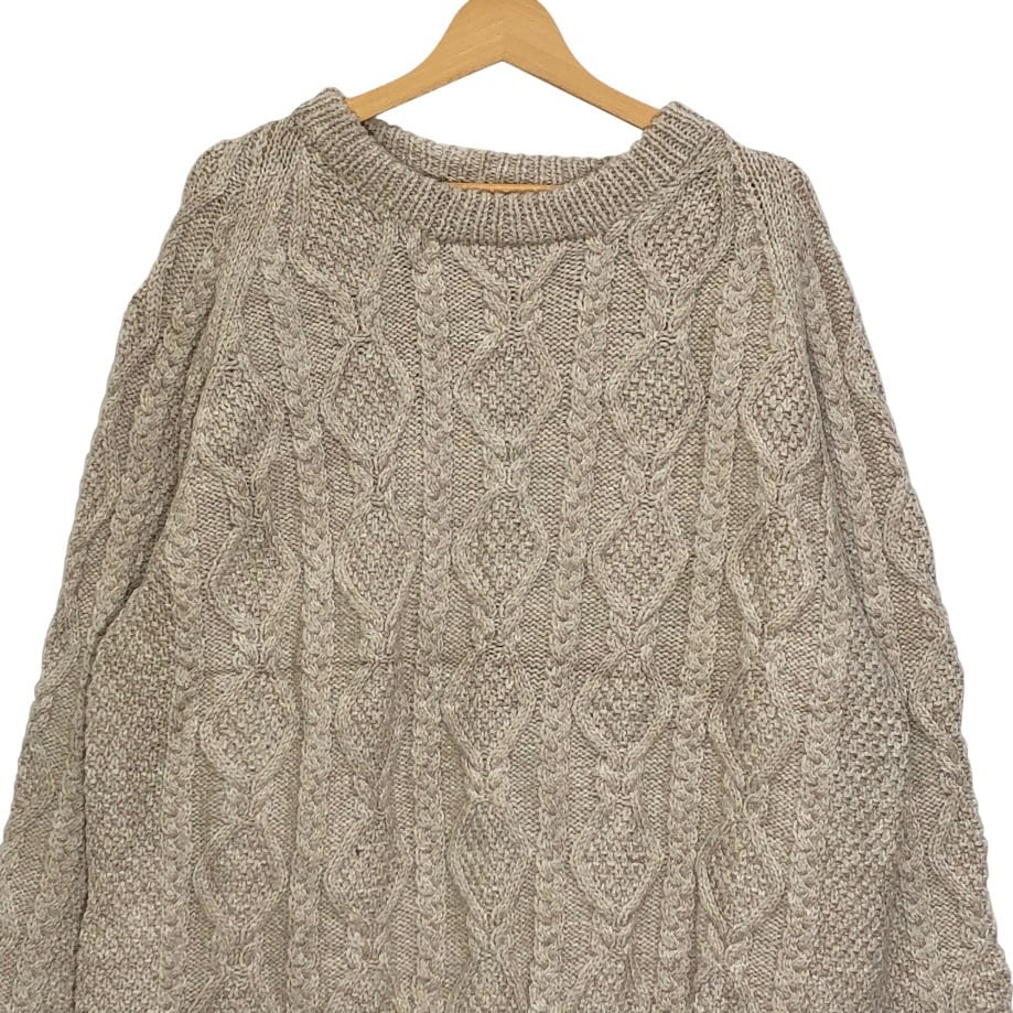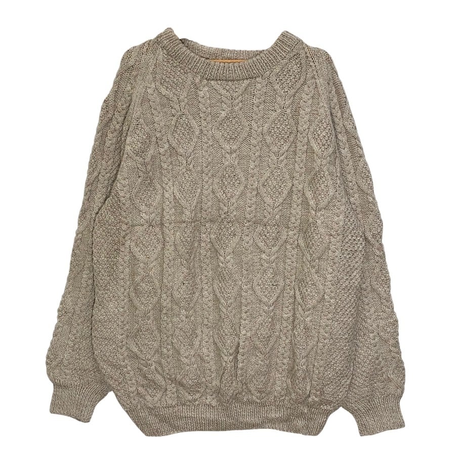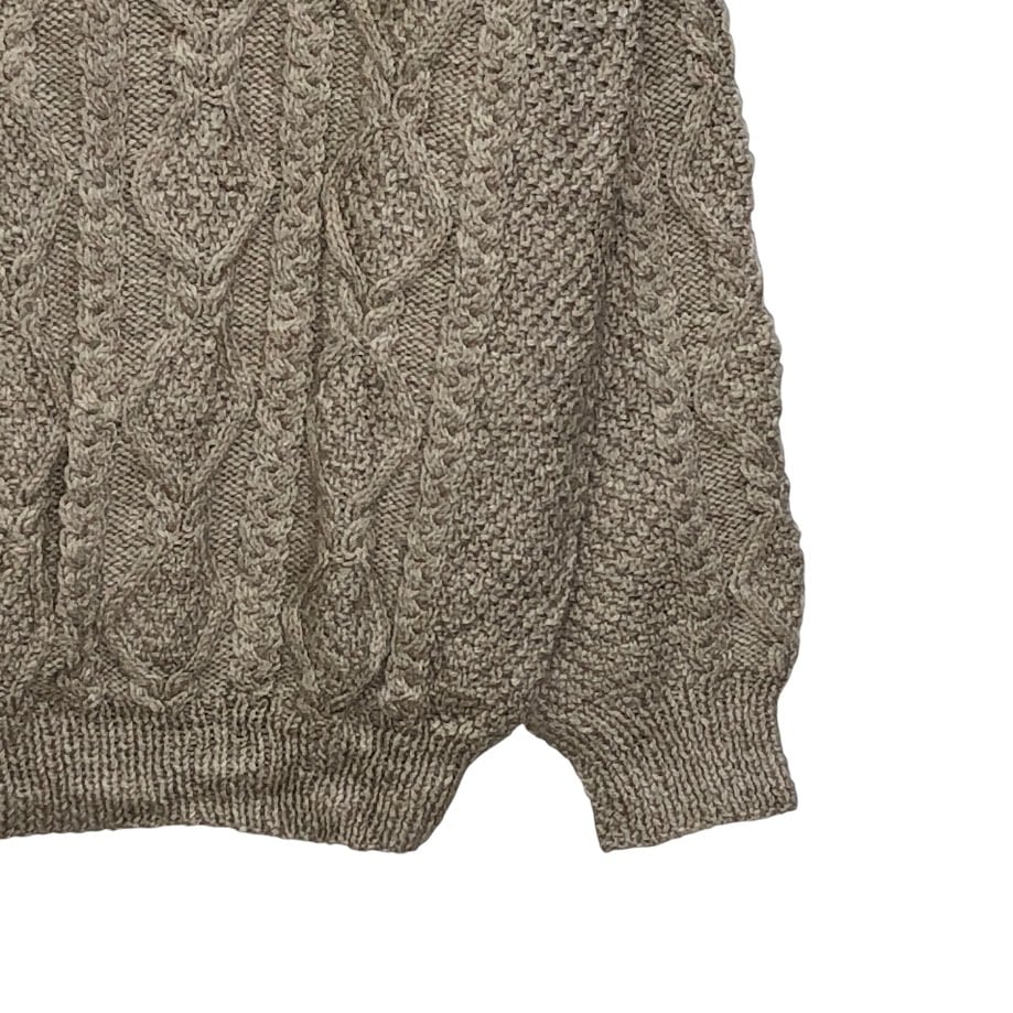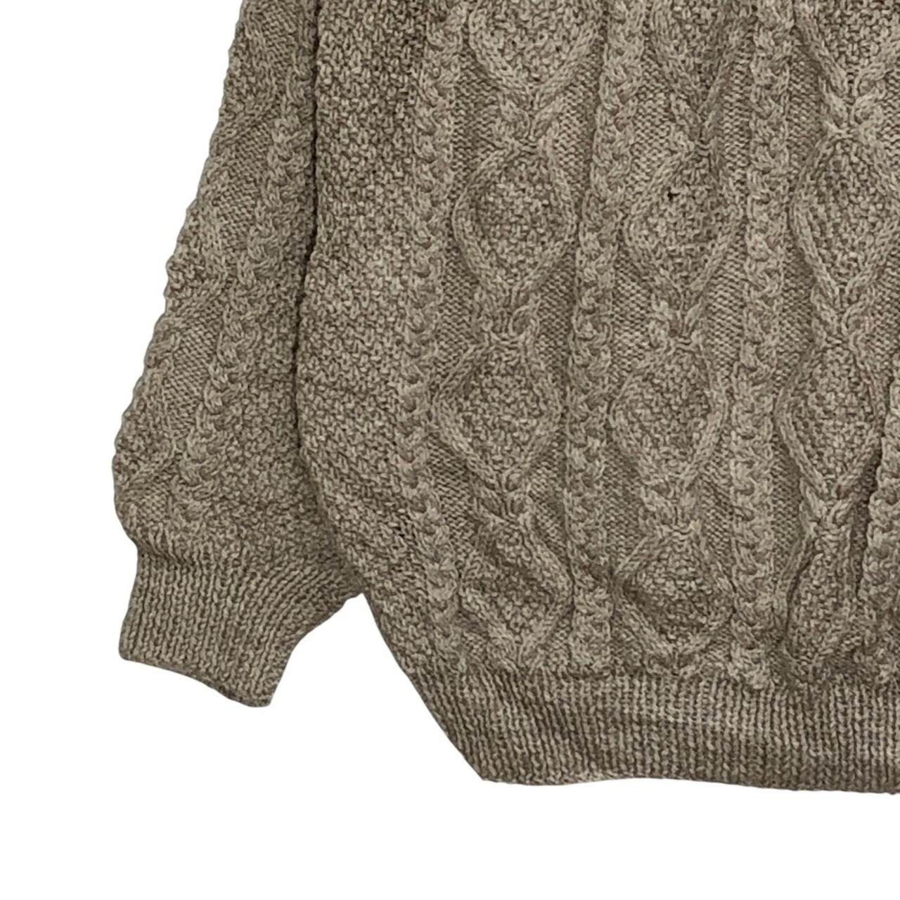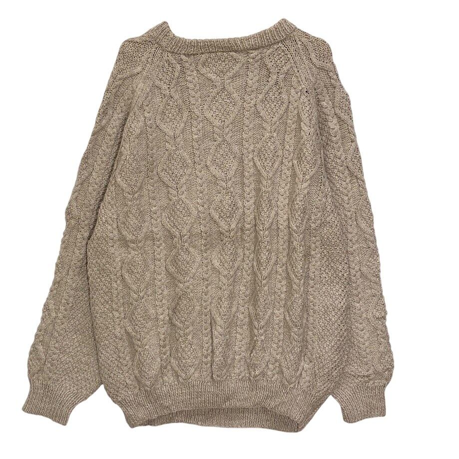 商品名:ヴィンテージ ケーブル編み リブ袖 ニット セーター ポロシャツ オーバーサイズ ビッグシルエット クルーネック メンズ ベージュ