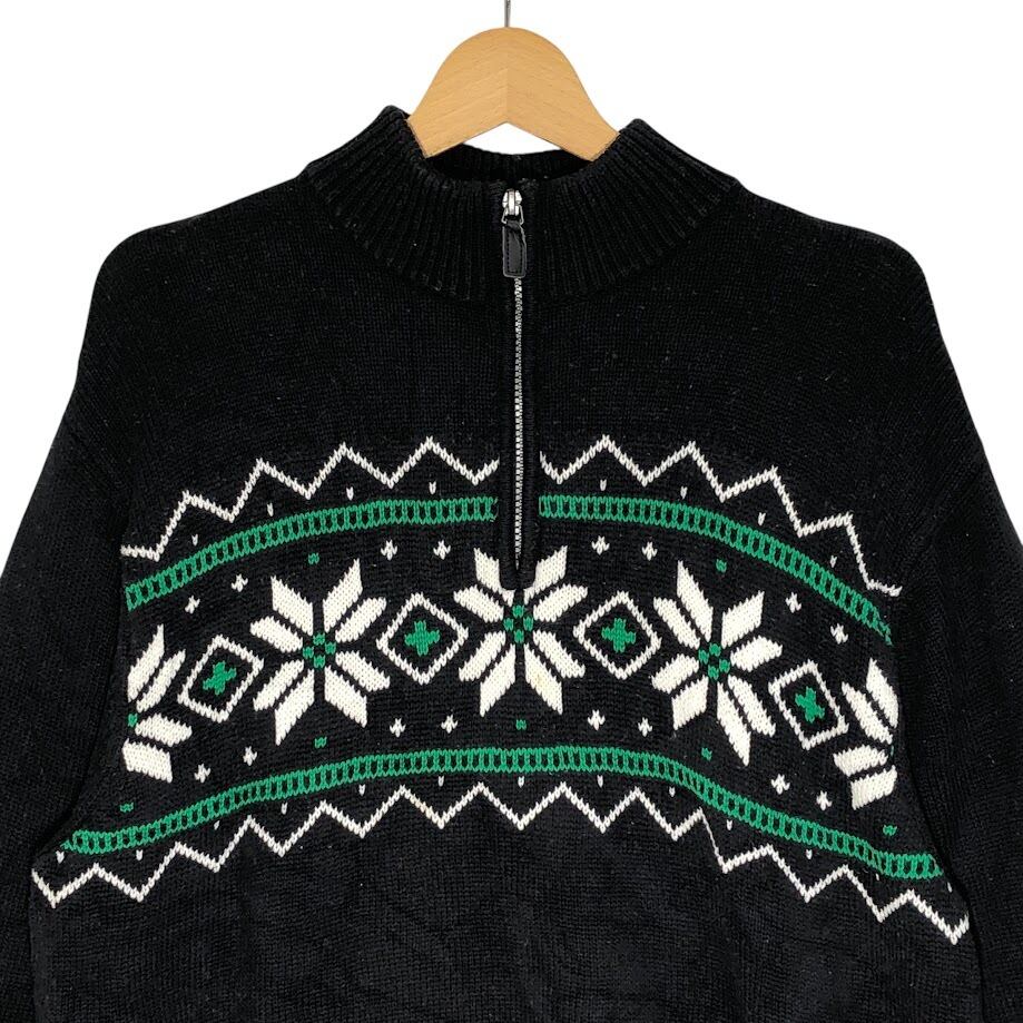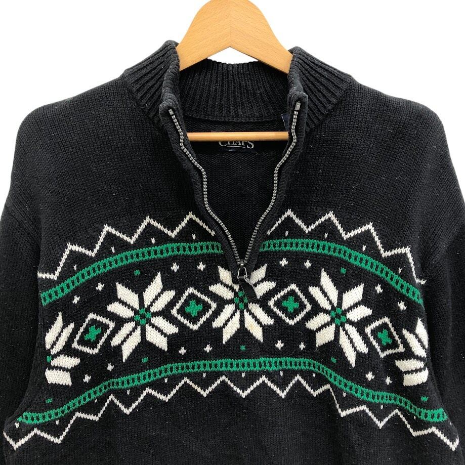 CHAPS チャップス ノルディック柄 ニット セーター ハーフジップ 長袖 オーバーサイズ ビッグシルエット CHINA製 XLサイズ ブラック | OASISCLOTHING 海外古着屋【公式】通販サイト