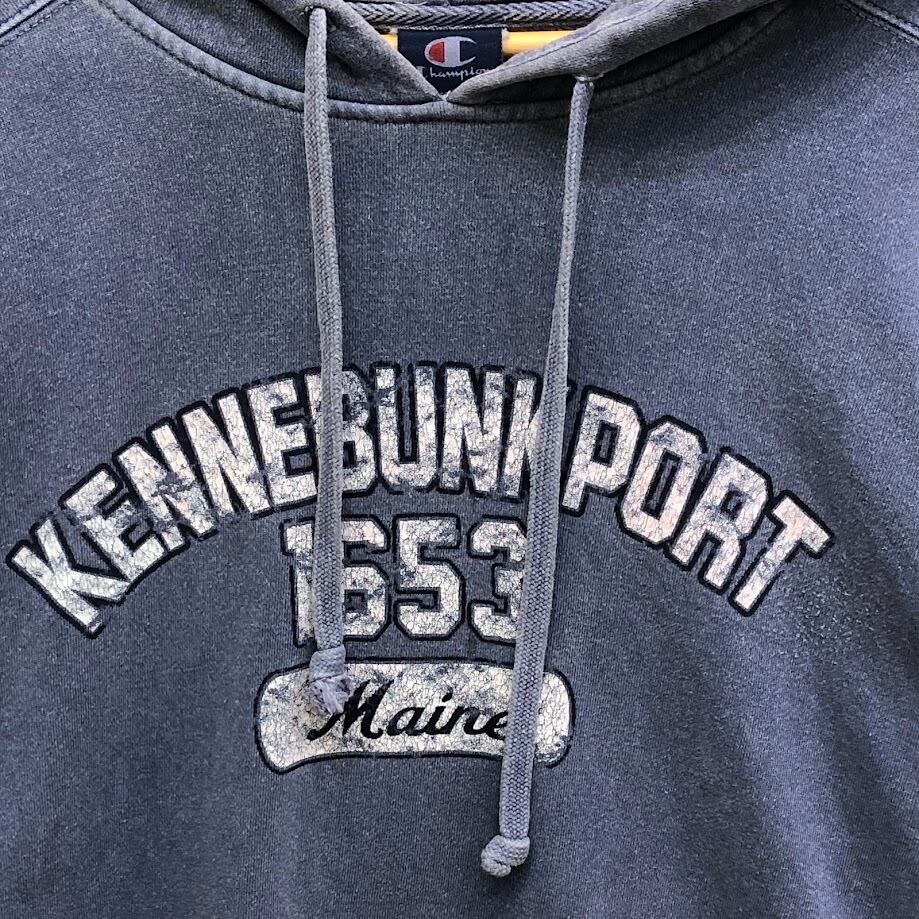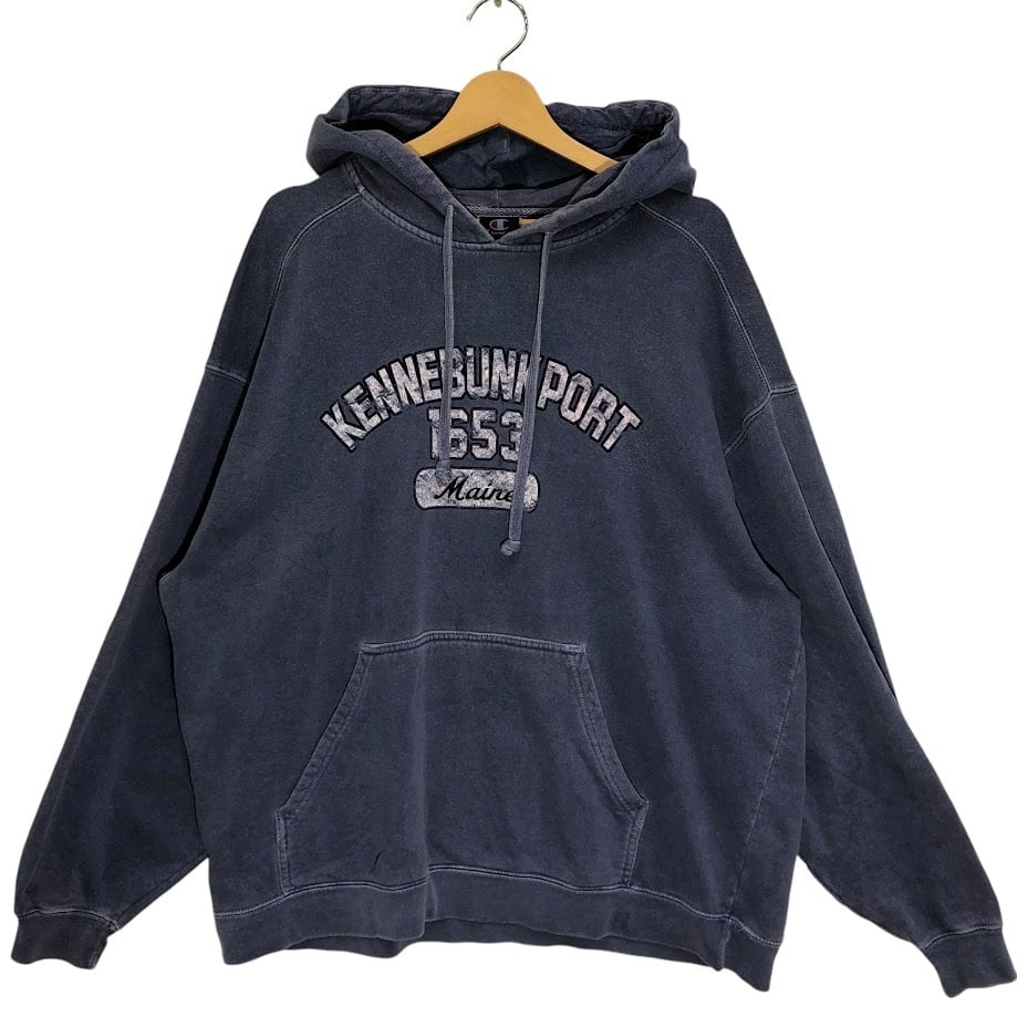 Champion/チャンピオン KEN NEBUNKPOPT Maine1653 パーカー フーディー プルオーバー 長袖 フロントプリント 袖刺繡 オーバーサイズ ビッグシルエット GUATEMALA製 XLサイズ ネイビー | OASISCLOTHING 海外古着屋【公式】通販サイト