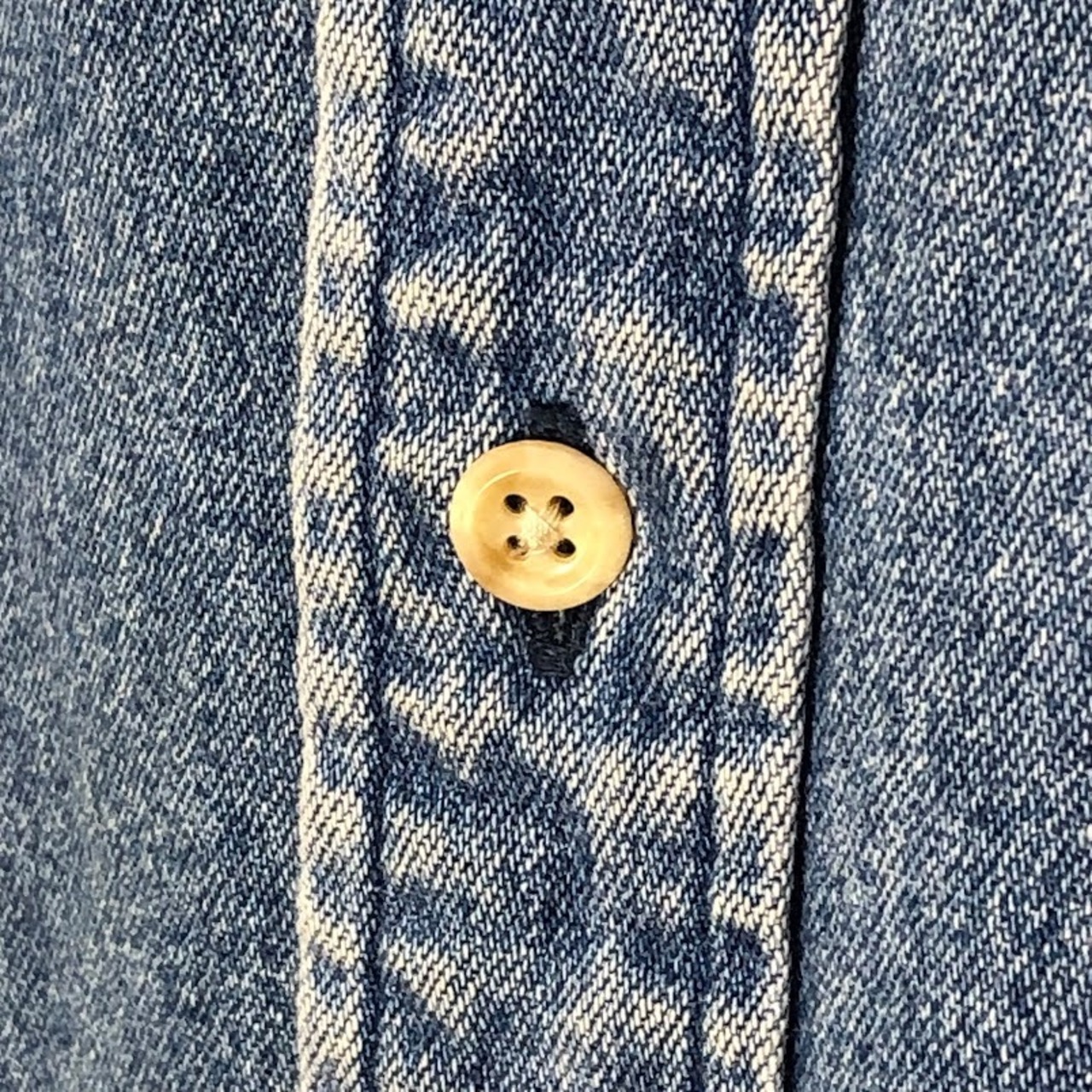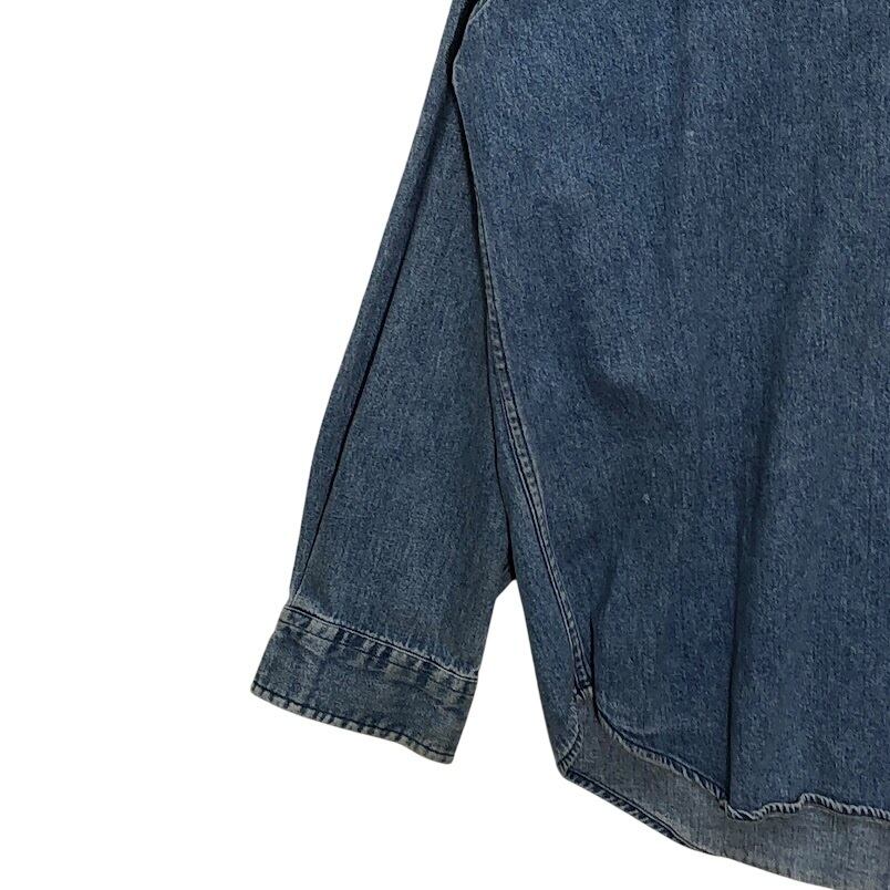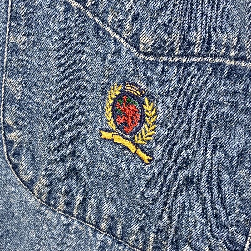 商品名:90's vintage TOMMY HILFIGER トミーヒルフィガー オールドトミー デニムシャツ 長袖 シャツ ボタンダウン ワンポイント刺繡 オーバーサイズ ビッグシルエット インドネシア製 XLサイズ ブルー