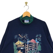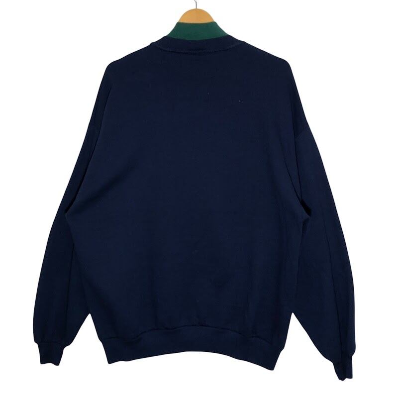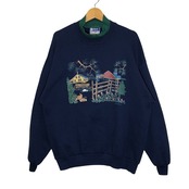商品名:90's vintage 90年代 ヴィンテージ findless Desingns アニマルプリント二重襟 スウェット トレーナー 長袖 フロントプリント オーバーサイズ ビッグシルエット USA製 XLサイズ ネイビー