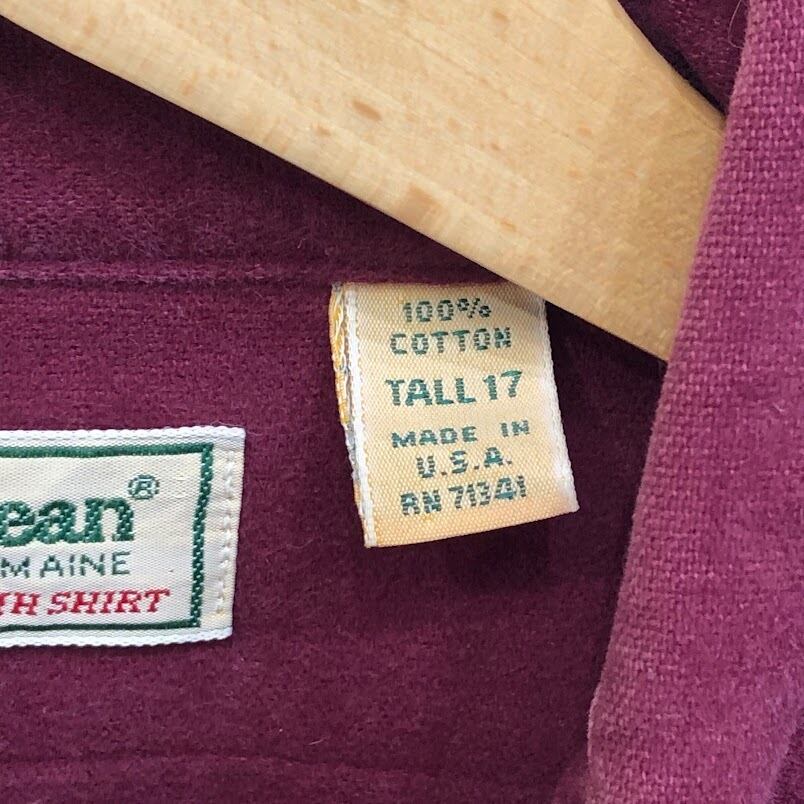 70's vintage 70年代 ヴィンテージ L.L.Bean エルエルビーン シャモアクロスシャツ 長袖 シャツ ボタンダウン オーバーサイズ ビッグシルエット USA製 TALL 17サイズ ワインレッド | OASISCLOTHING 海外古着屋【公式】通販サイト