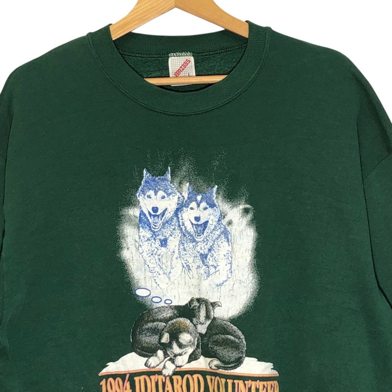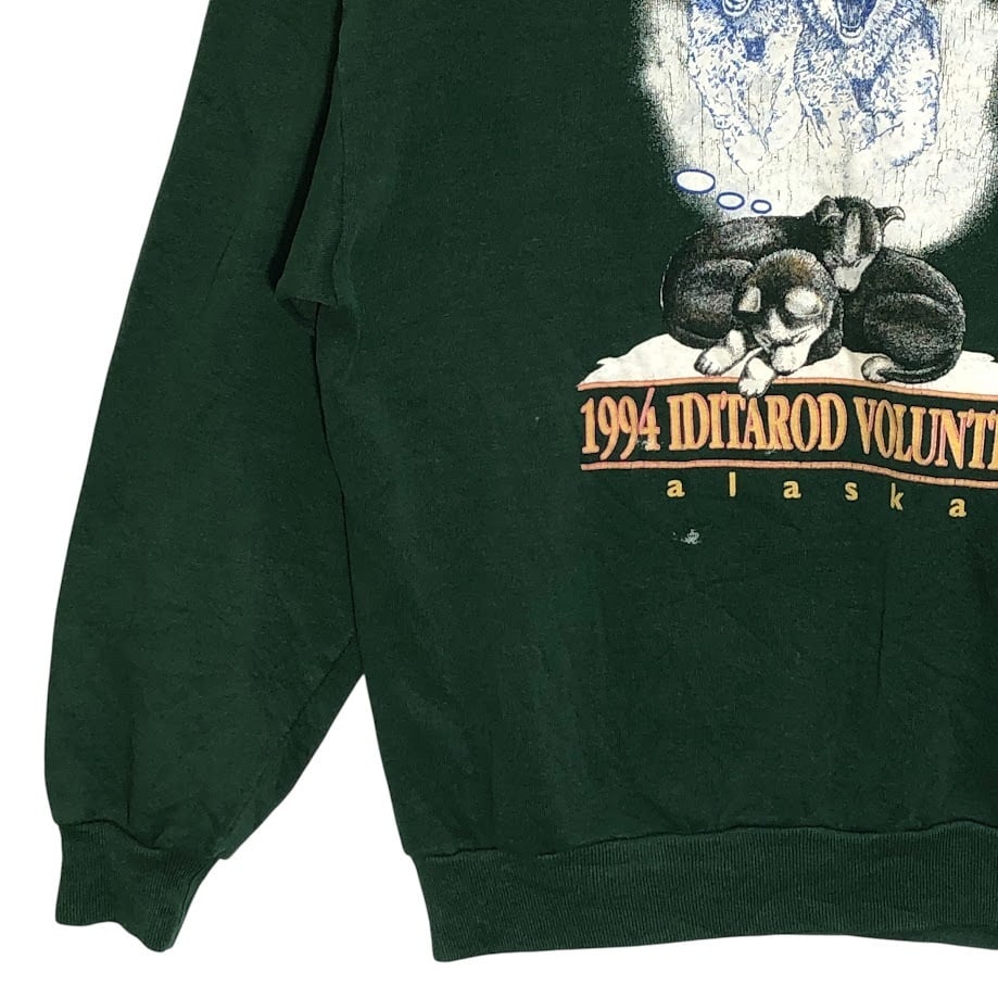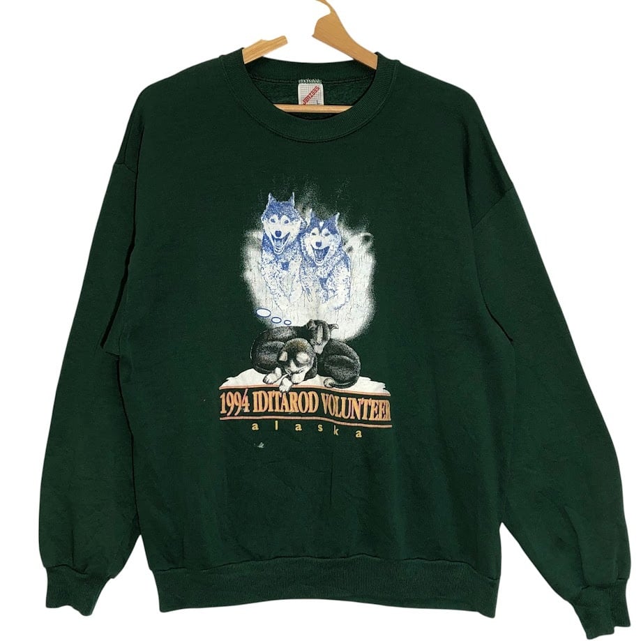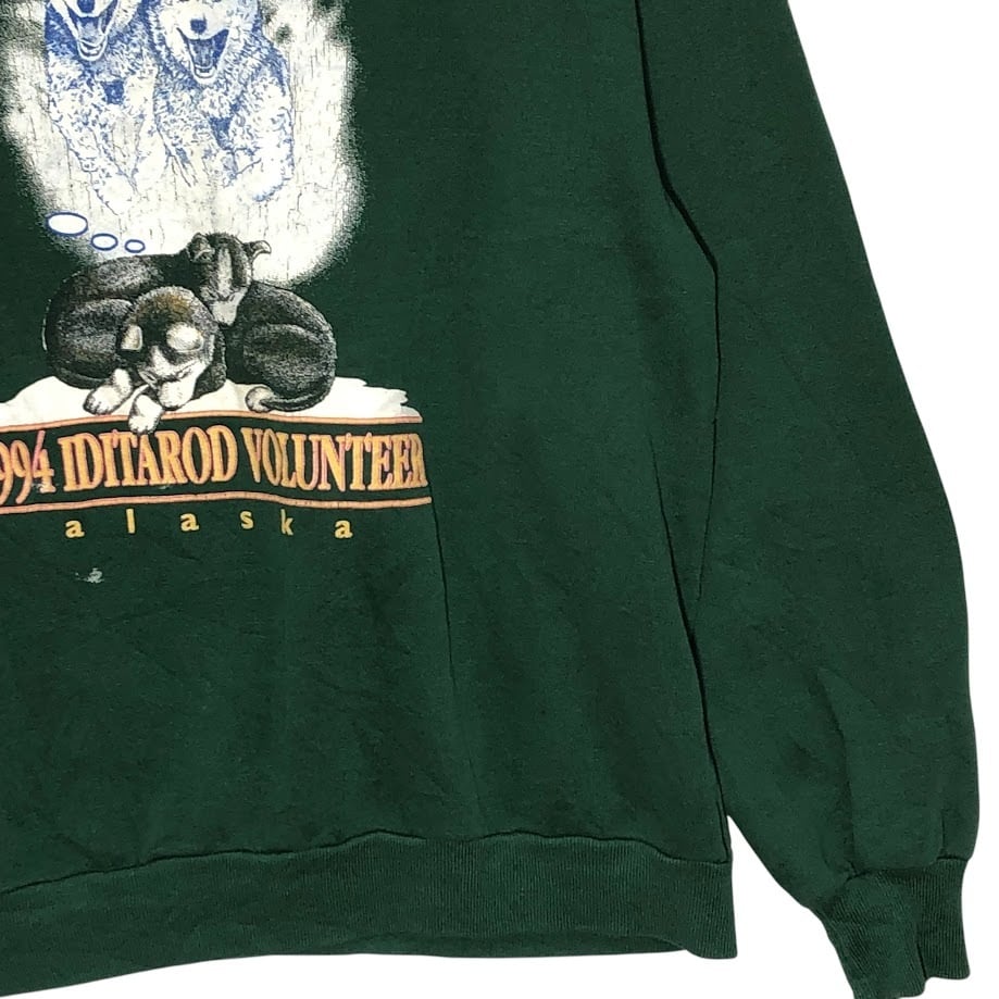 商品名:JERZEES/ジャージーズ 90年代 vintage ヴィンテージ 1994年 アイディタロットボランティア アニマルプリント USA製 スウェット トレーナー フロントプリント バックプリント USA製 Lサイズ グリーン
