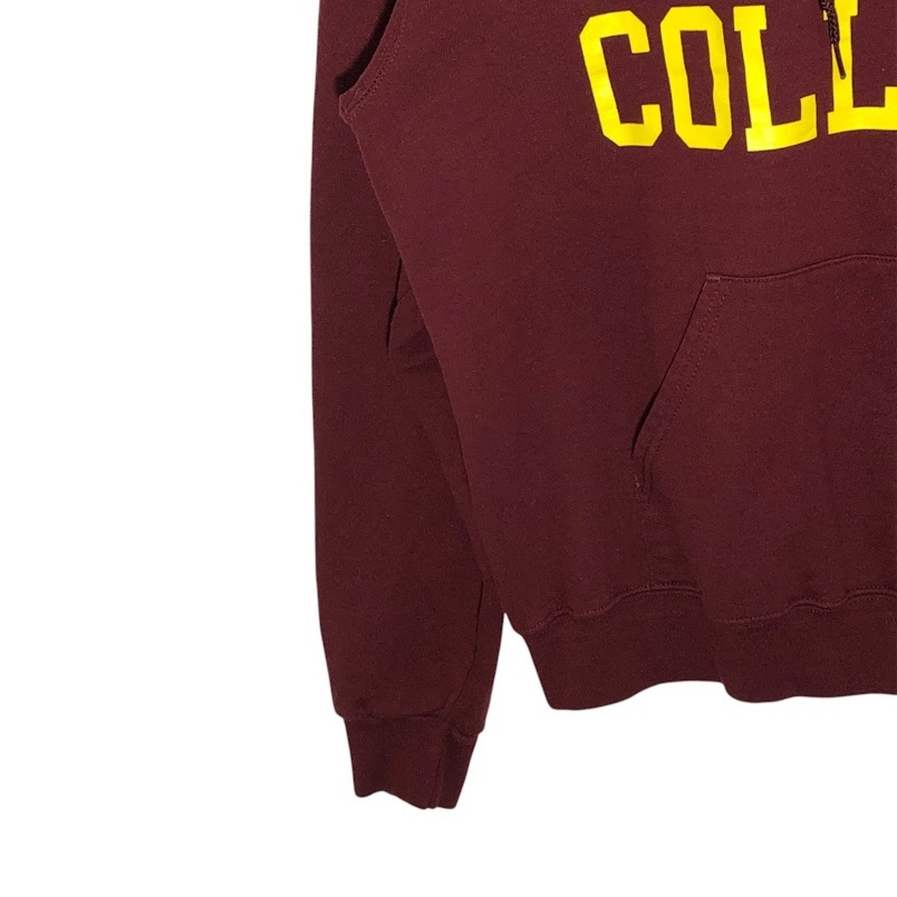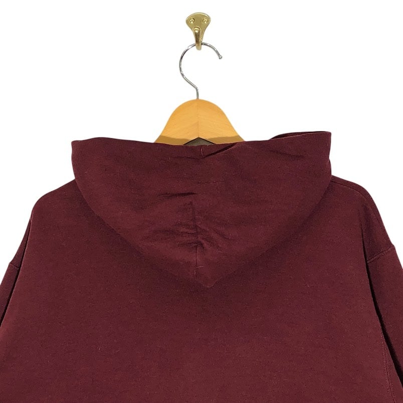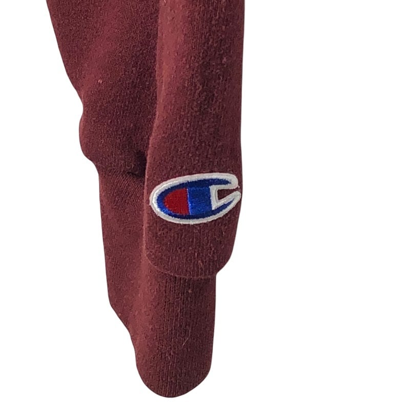 商品名:Champion チャンピオン CALVIN COLLEGE カレッジ刺繍 パーカーフーディー プルオーバー 長袖 フロント刺繍 袖プリント NICARAGUA製 Mサイズ ワインレッド
